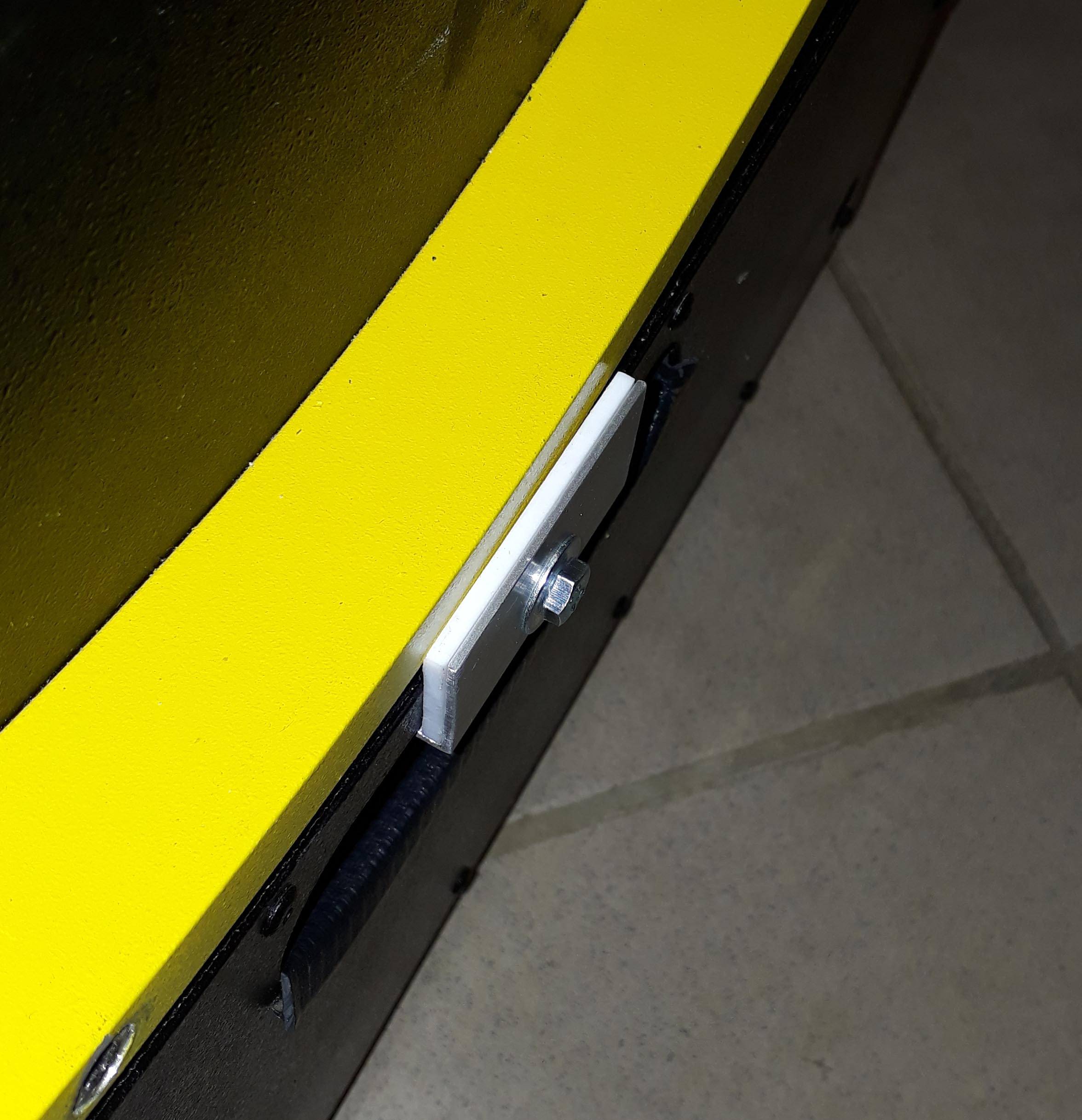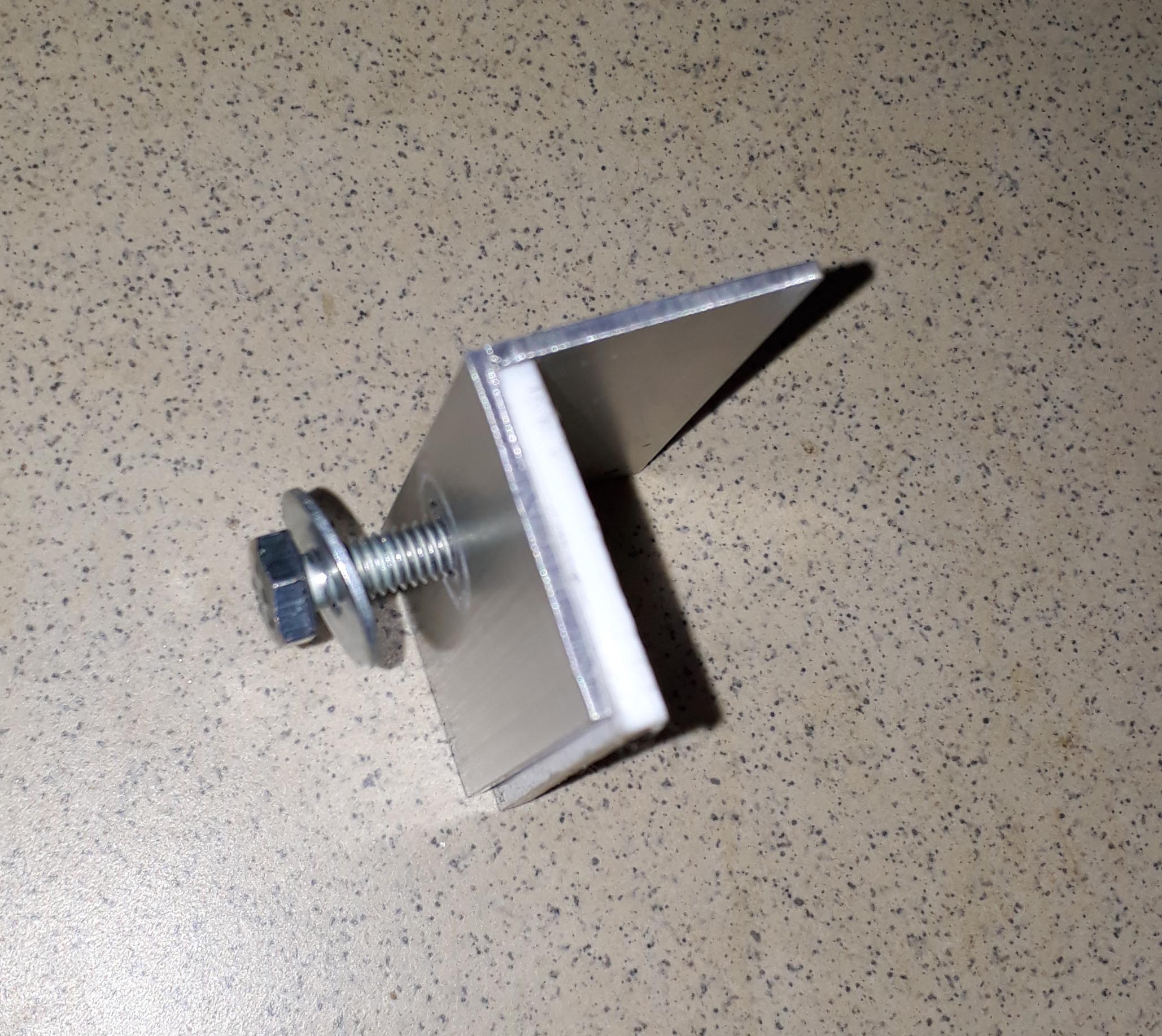 B) Installation d'un frein avec une cornière alu, un plaque de teflon et un vis de 6 mm. Il servira aussi à maintenir la boite en place lors j'utilise la table équatoriale qui fait pencher, aux extrêmes, le télescope.