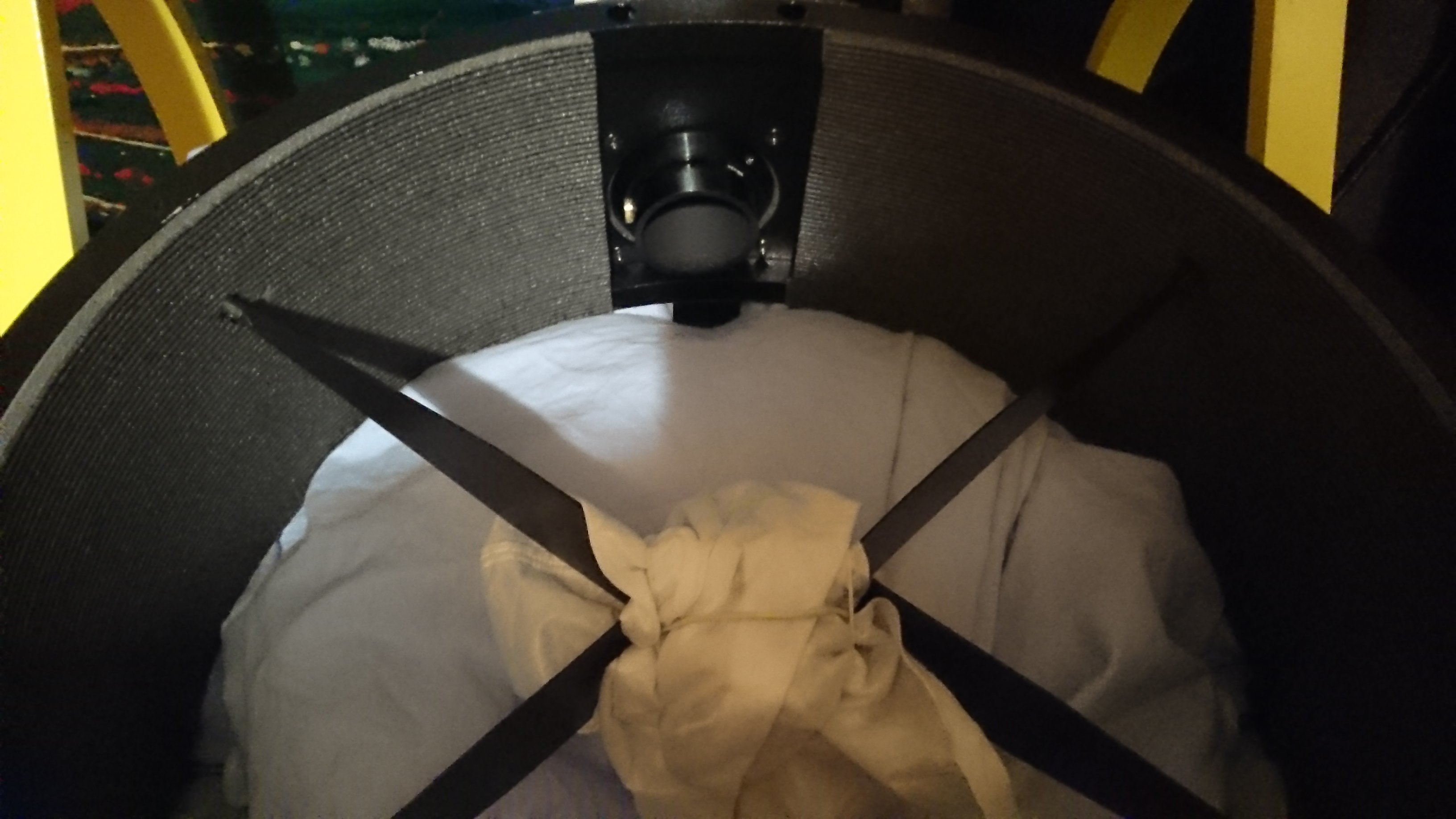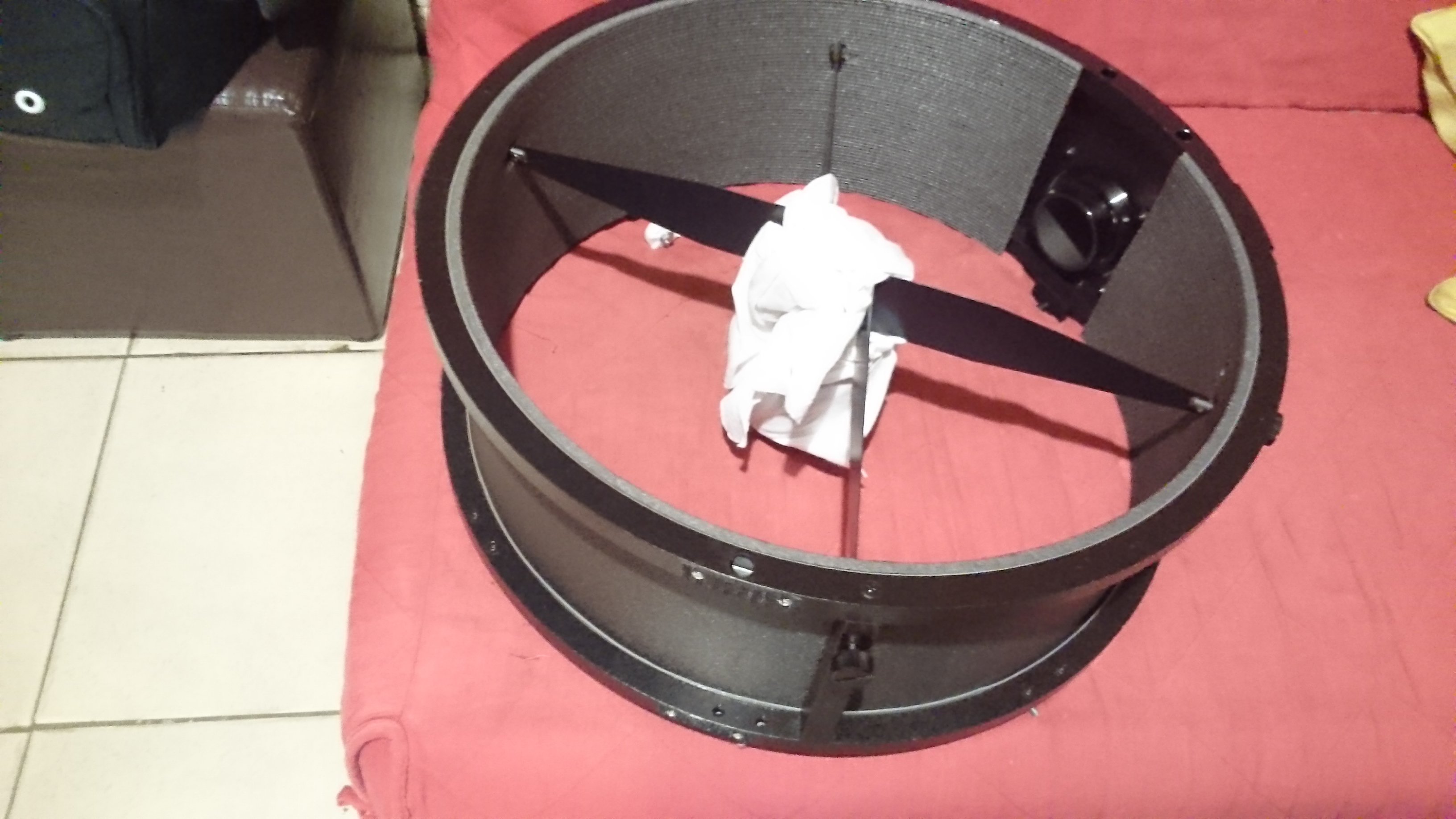 le primaire est comme neuf (en même temps il a pas encore du voir les étoiles🤩), il y a juste des toutes petites gouttelettes bleutées sur une petite zone et si je fait de la buée dessus il y a les fameux stries, comme d’autres ont pu observer en commandant chez Bresser. Et pourtant le papier de protection était parfaitement lisse au déballage. apparemment aucune trace si pas de condensation sur le miroir donc cela ne devrait pas être gênant. J’ai du faire le déballage dans mon garage donc j’ai vite remballé le primaire car je voyais la poussière tomber dessus!