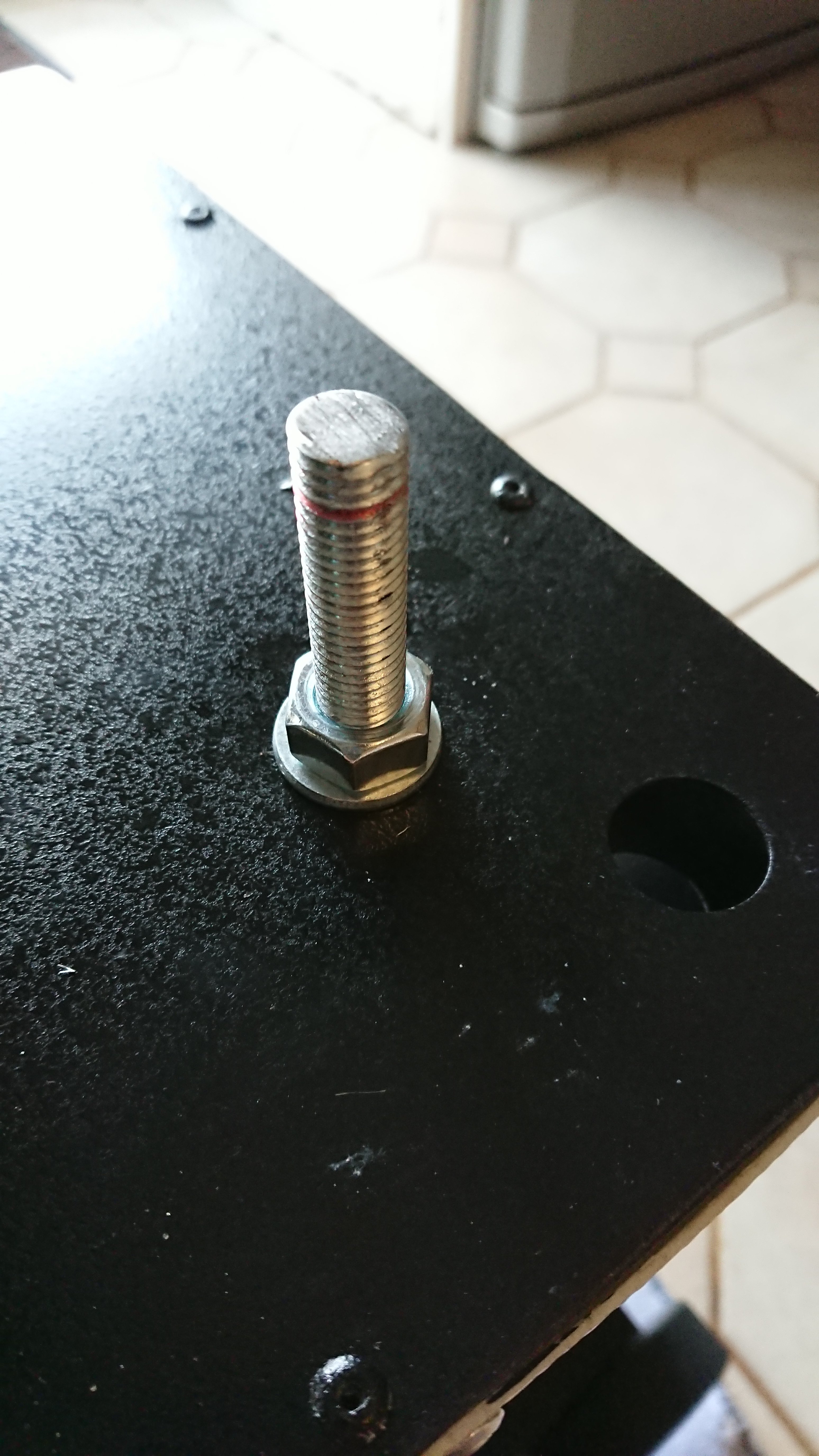 dès la première vis j’ai un problème. Une des vis des roues de l’altitude est soit abîmée soit trop courte. En tout cas elle « saute » quand on essaye de visser, il a fallut la changer. Heureusement mon ami m’a trouvé une remplaçante parfaite.