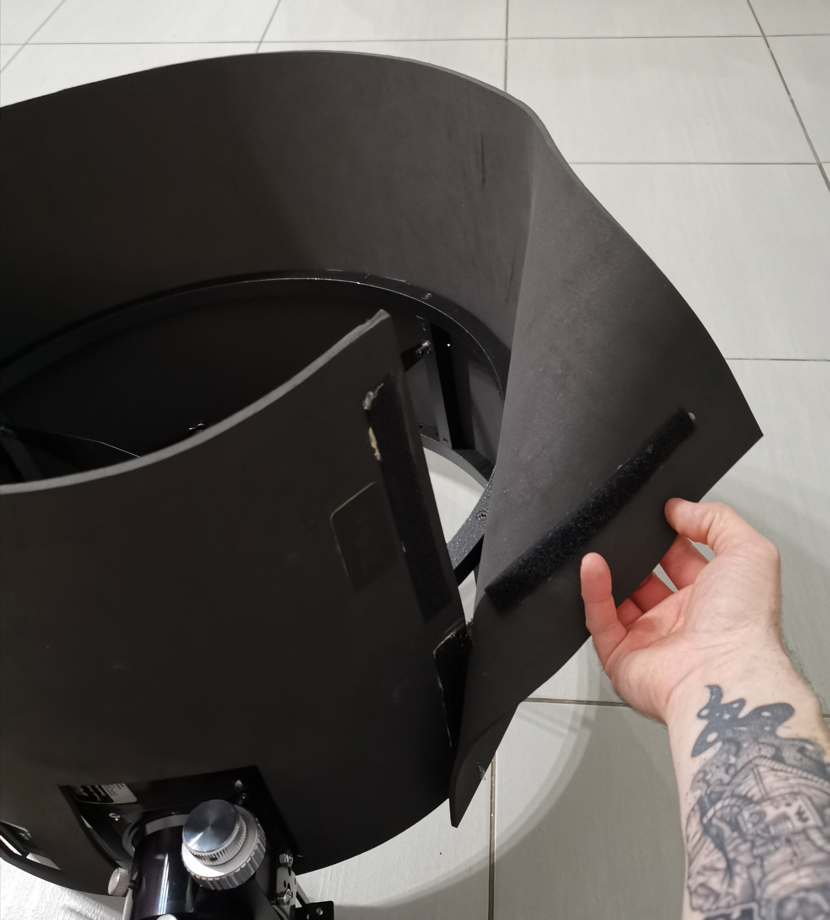 j’ai eu un gros soucis pour gérer la cage du secondaire. Le télescope ne faisait que de remonter au zénith donc je n’arrivais pas, à bout de bras et du haut de mes 1,60m, à tenir et visser. Finalement mon chéri m’a aidé (j’aurai voulu pouvoir le faire seule...).