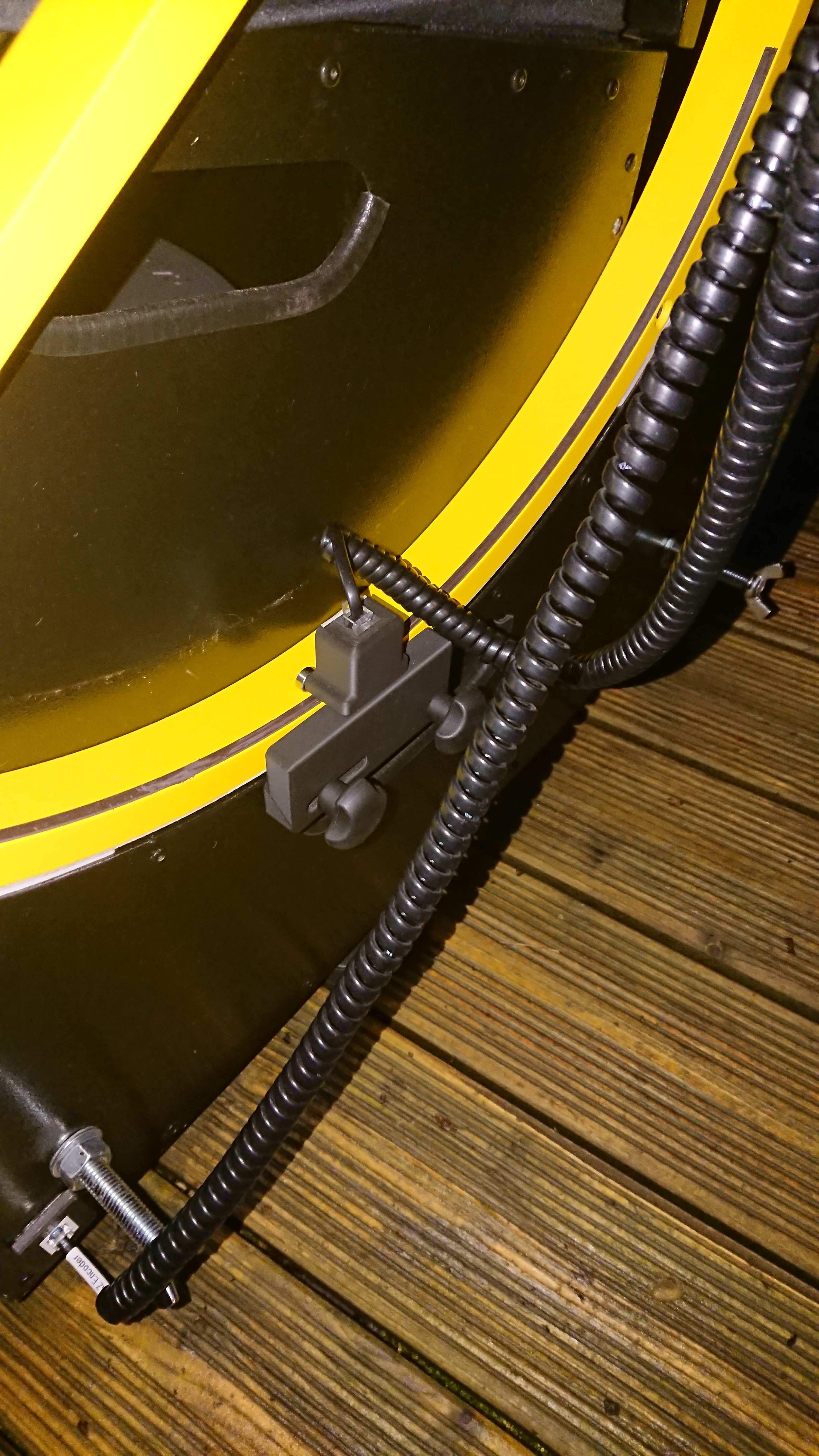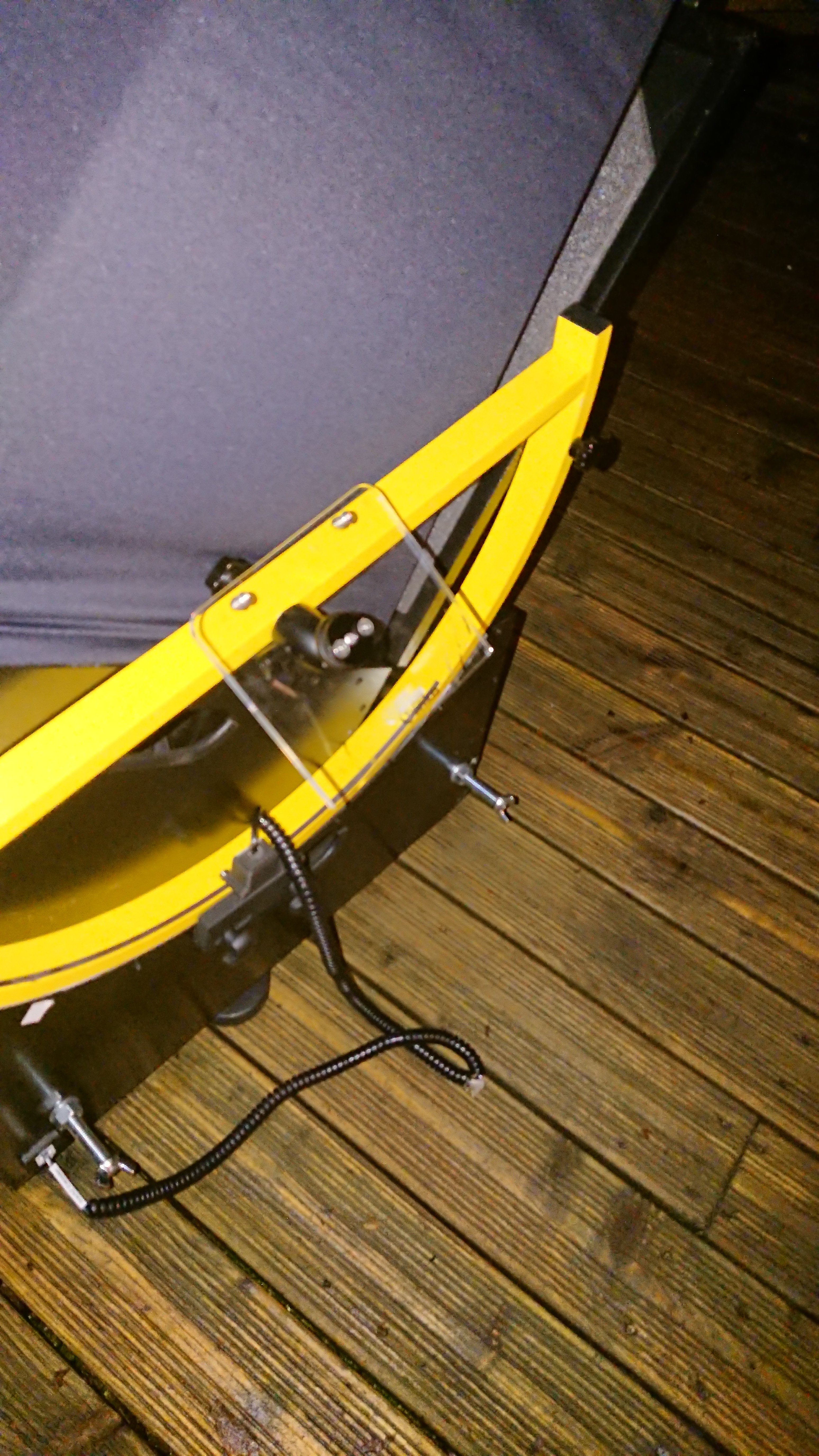 j’ai donc du bloquer le dobson incliné en glissant une boîte en plastique à l’avant, entre le rocker et la boîte du primaire. Il faut que j’arrive a trouver une solution tout terrain, genre un tendeur ou un contrepoids suspendu, ou qq chose que je peux coincer le temps du montage quand je suis dehors...toute idée est bonne à prendre...