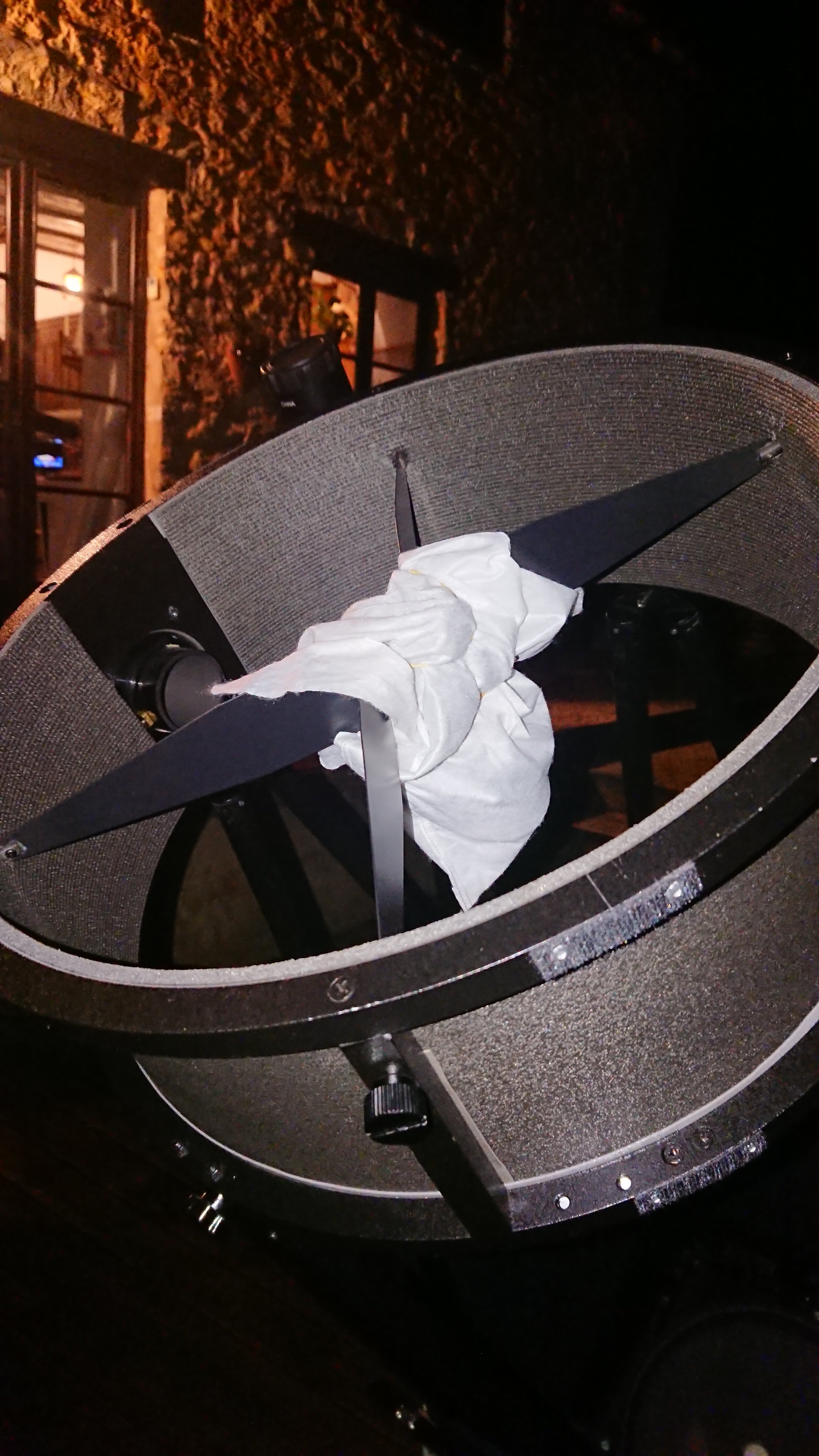 pour le cache miroir (récupérateur d’eau) c’est finalement 45cm la bonne taille. Il s’emboîte parfaitement sur les vis de collim, mais est ce que c’est Risqué ? Car ça force un peu sur les vis quand même.