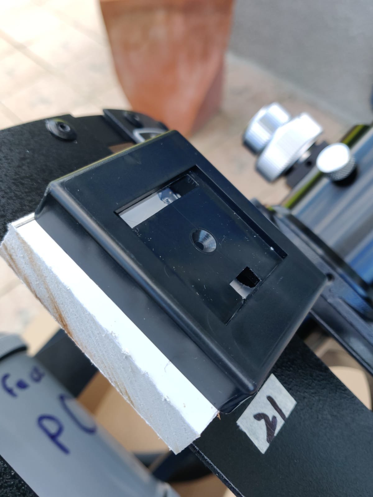 - une fixation maison avec des chutes de la découpe de la protection du primaire pour le socle du quickfinder