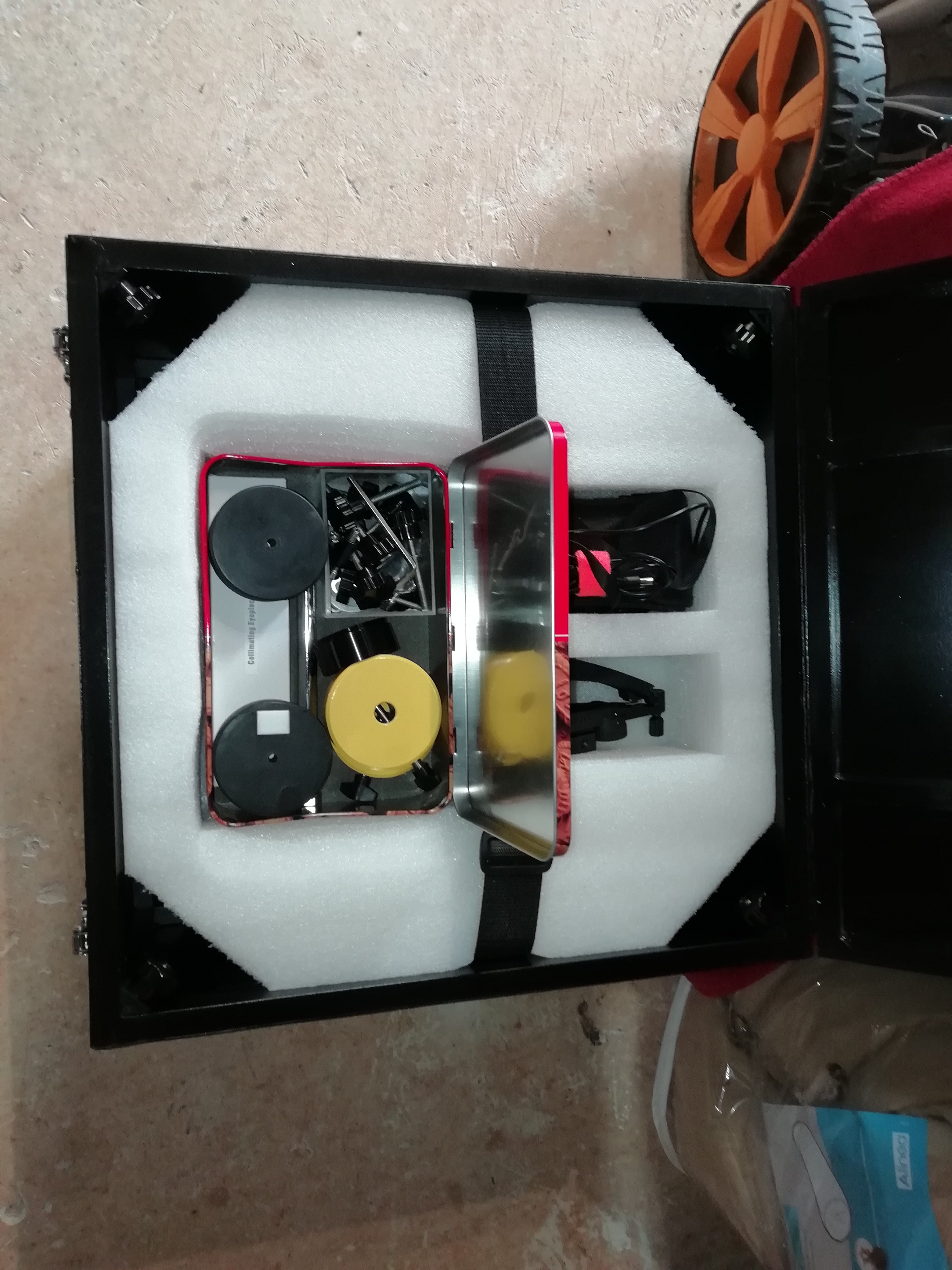 - une protection pour le miroir primaire, avec en plus la protection du miroir de base avec le carton d'origine en dessous, et une petite poignée