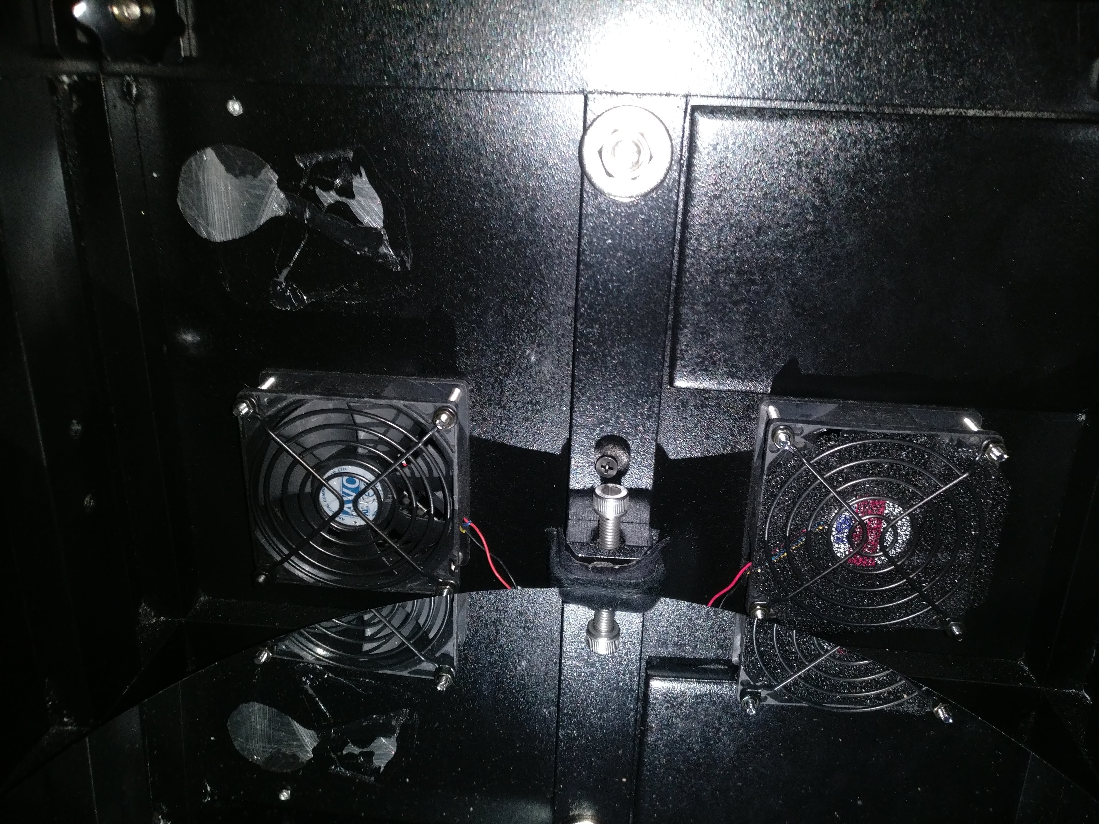 Il se trouve que dans la cage du primaire, juste au dessus des ventilateurs, se trouvent 2 contrepoids surement nécessaires à l'équilibrage. Sauf que voila, dans mon cas, l'un de ses contrepoids a cédé, et quand on voit la façon dont il était collé, on peut dire que ça devait arriver ... Contact avec le support car normalement encore sous garantie, en attente d'un retour ...