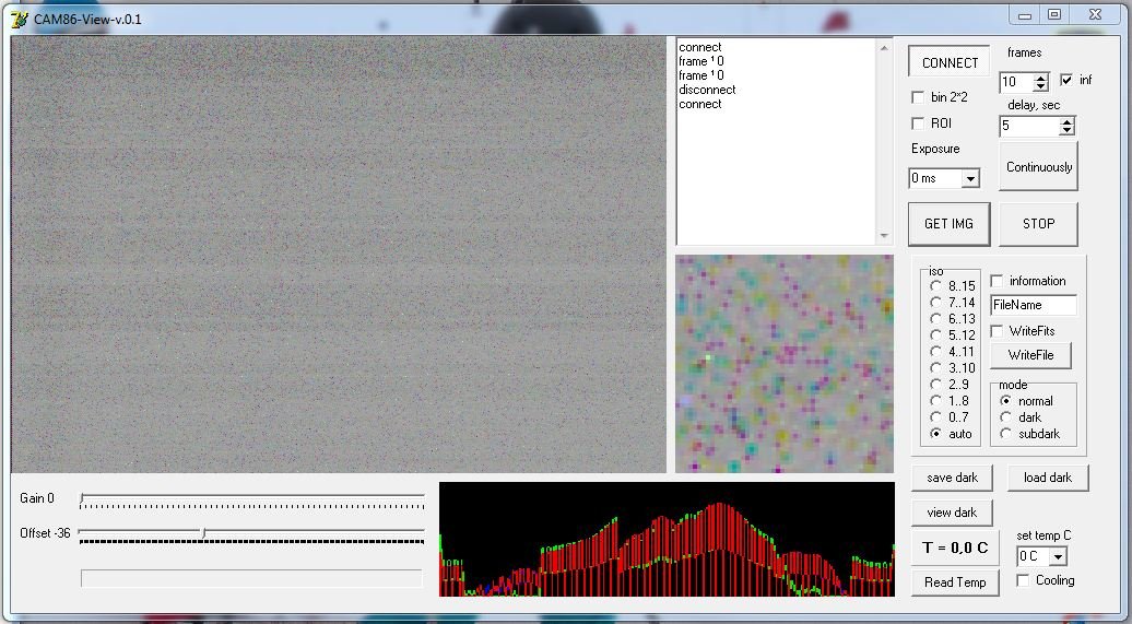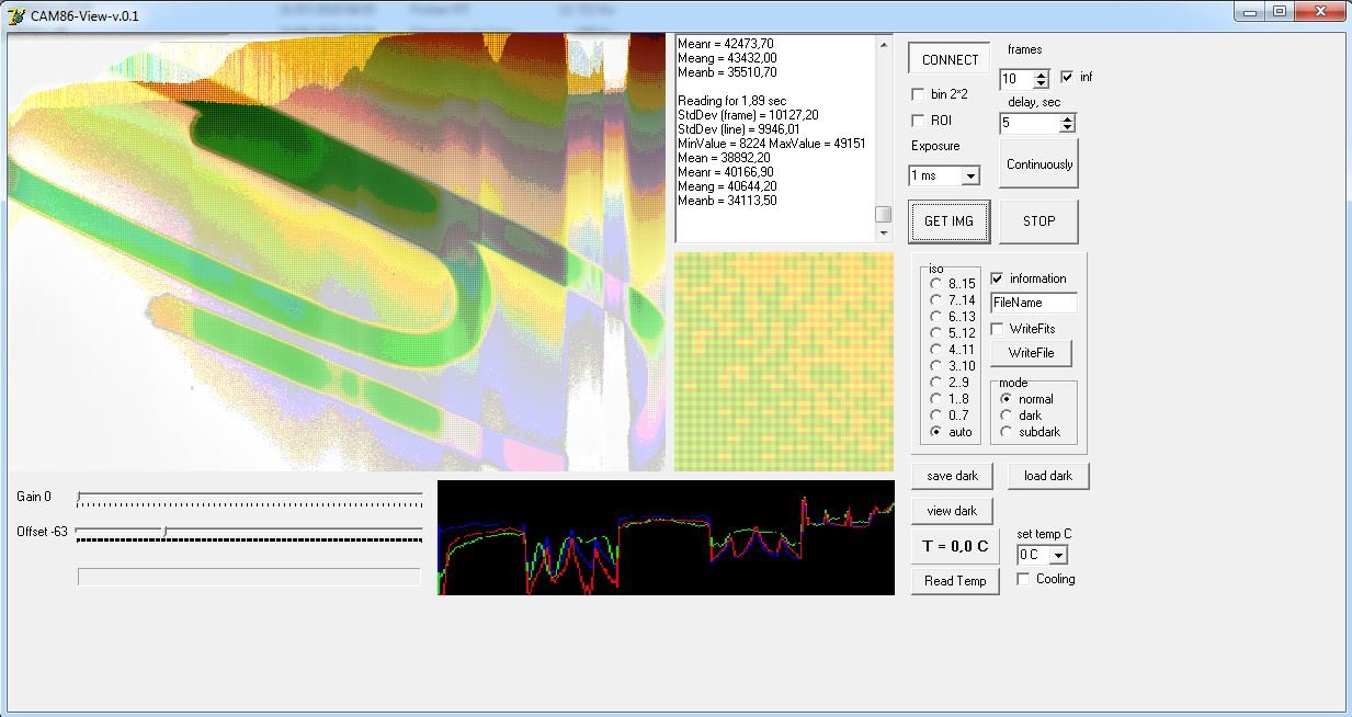 Avec l'offset et le gain à 0 et dans le noir, ça donne la même chose, voici une nouvelle image obtenue dans ces conditions et avec la case info cochée (capteur soudé)
