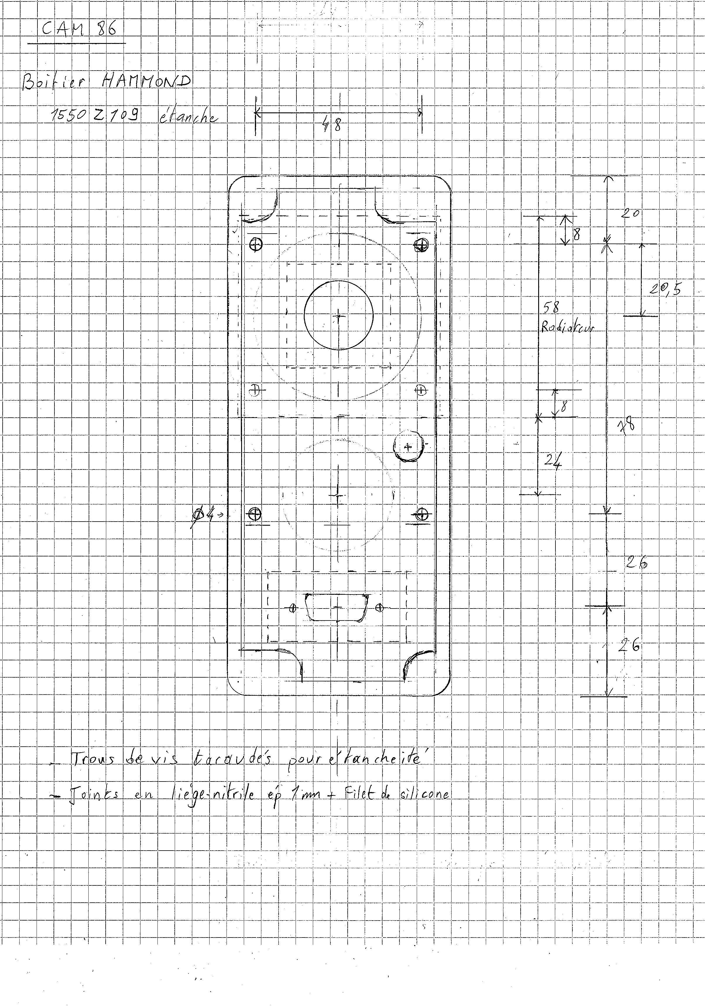 - une plaque de cuivre de 1mm (ouverte à l'endroit des pins) pour le contact avec le peltier