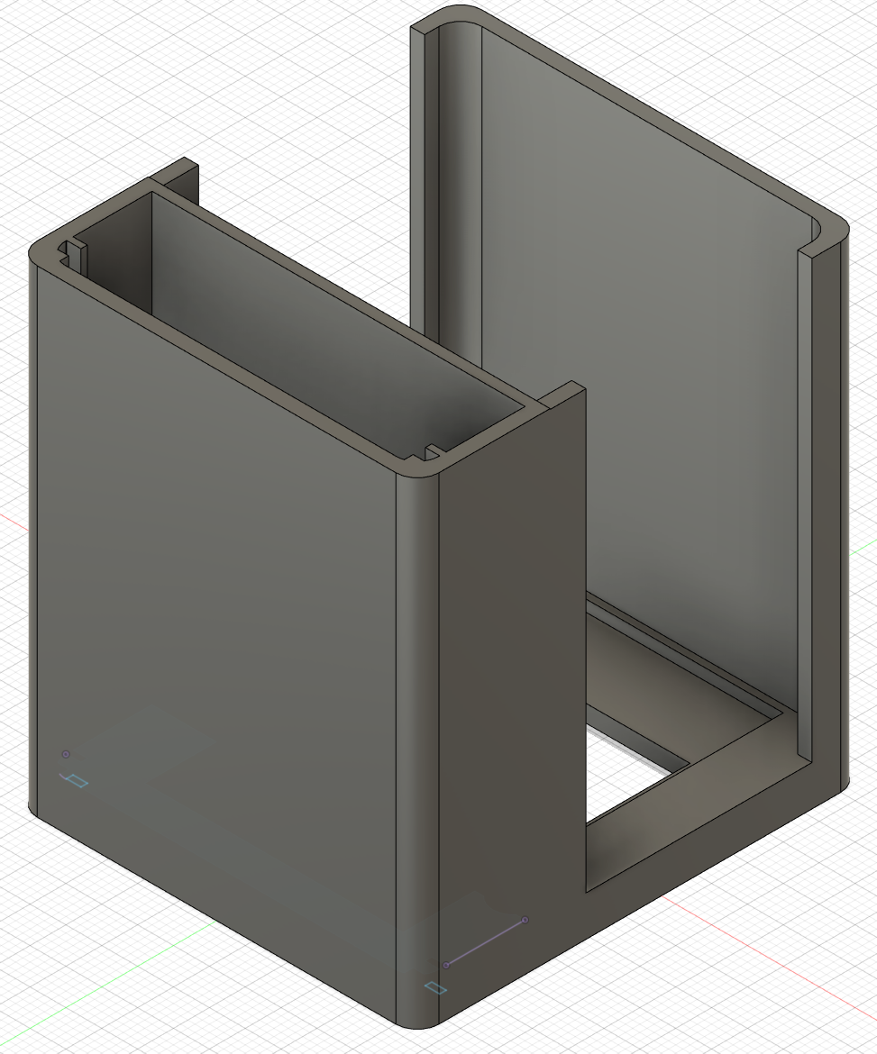 je commençais tout juste à reflechir au boitier que tu l'as deja pondu, c'est à peu prés ce que j'imaginais sans la partie "fine" qui posera probleme à l'impression ou alors ca va être long, trés long... sinon elle va vriller.