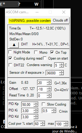 A tout hasard, ne peux tu pas faire en sorte que la fenêtre du pilote ascom avec ses paramètres soit rendue visible ou intégrée à l'interface ? Elle reste visible avec APT et c'est bien utile pour vérifier les paramètres de la cam comme l'offset, la température et l'humidité dans le boitier et autres valeurs...