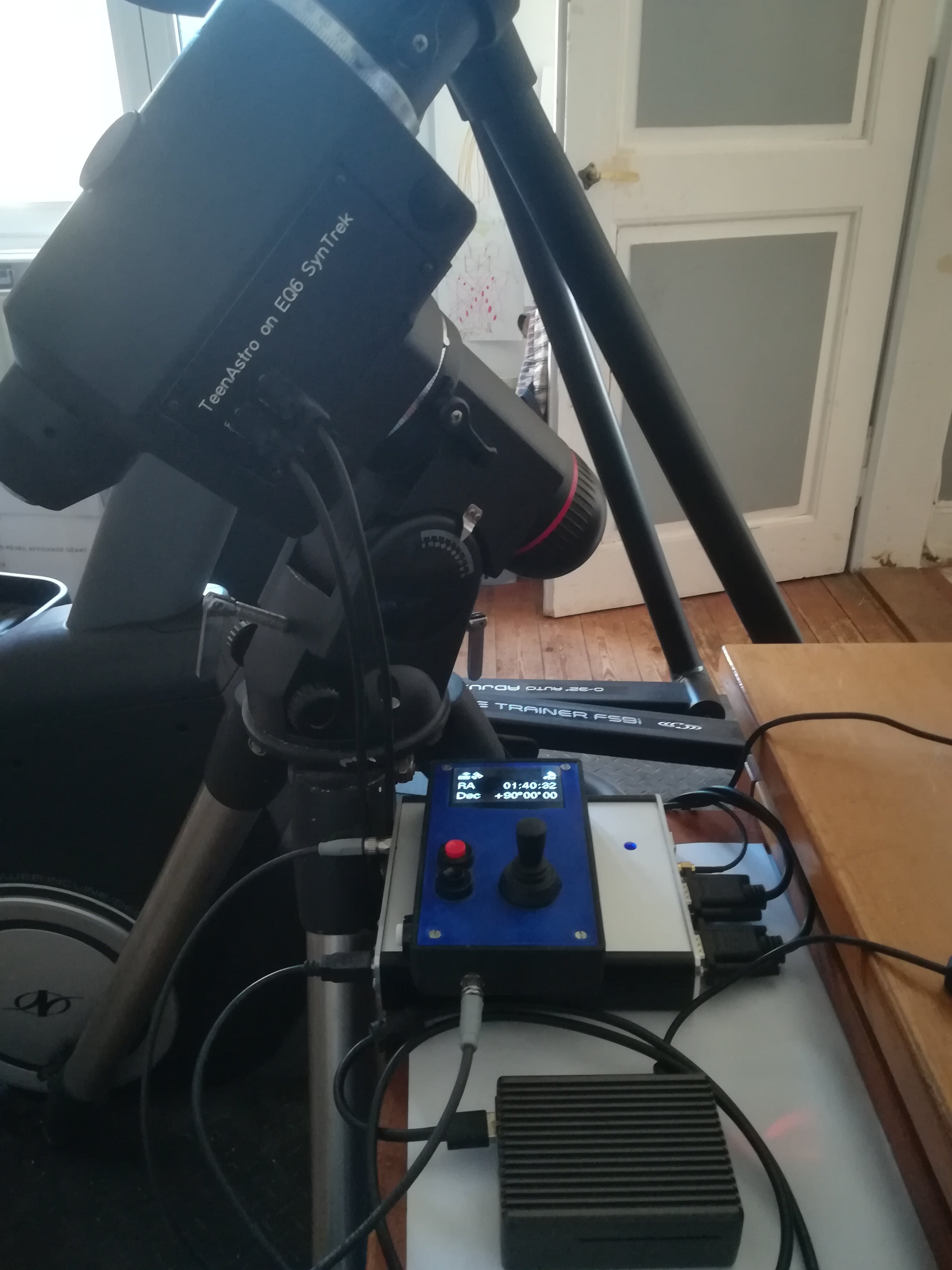 Dans cette optique, je me suis assemblé un kit TeenAstro  ( https://groups.io/g/TeenAstro )que je peux commander en wifi via un RPI4  NAFABox avec Kstars.