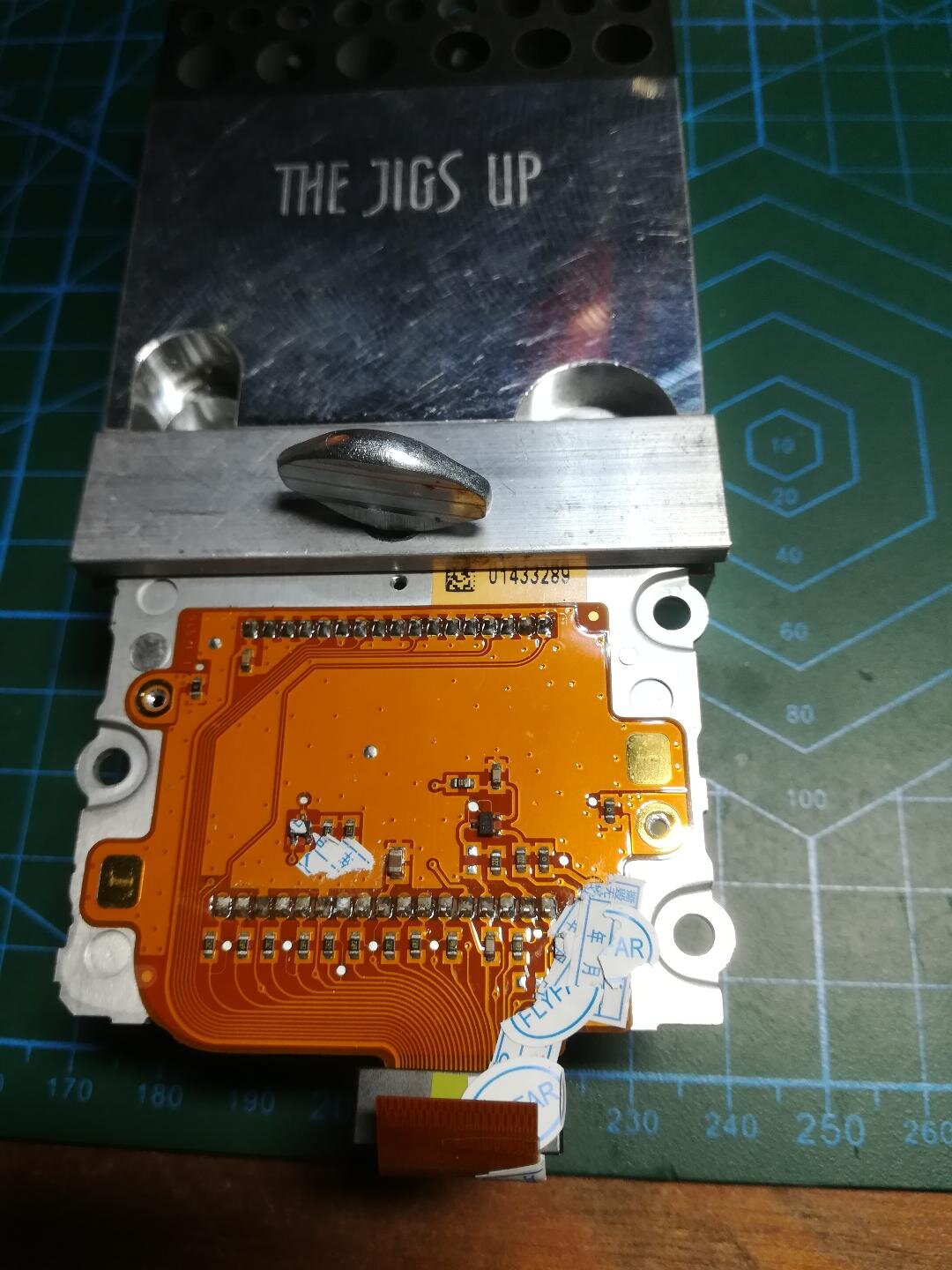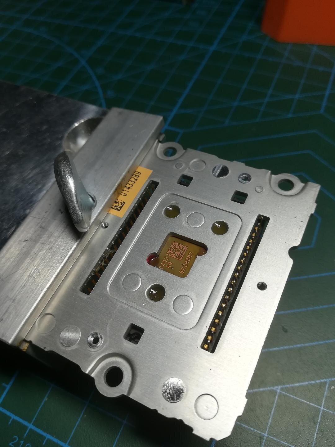 Edit: voilà, c'est déssoudé, mais je vais devoir passer par la case acétone, mon capteur est trop bien collé; ensuite un petit nettoyage encore des pattes du capteur, mais il est déjà bien propre.