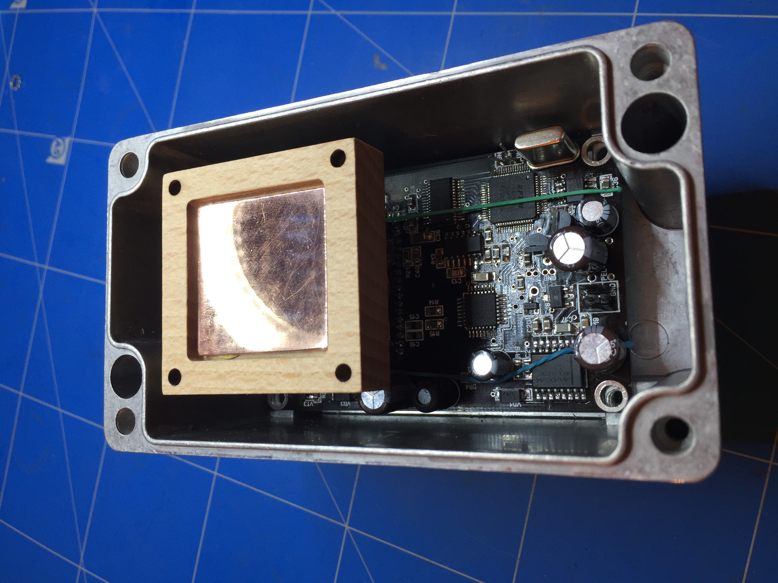 Juste un truc, si tu mets le peletier contre le boitier, à l'intérieur du couvercle il y a une inscription en relief.. HAMMOND à l'endroit ou le peletier doit prendre son appui. Cela te fera perdre un peu de surface de contact. Bien bourré de graisse thermique ça devrait le faire. Ca vaut vraiment le coup d'essayer, ça coute rien.
