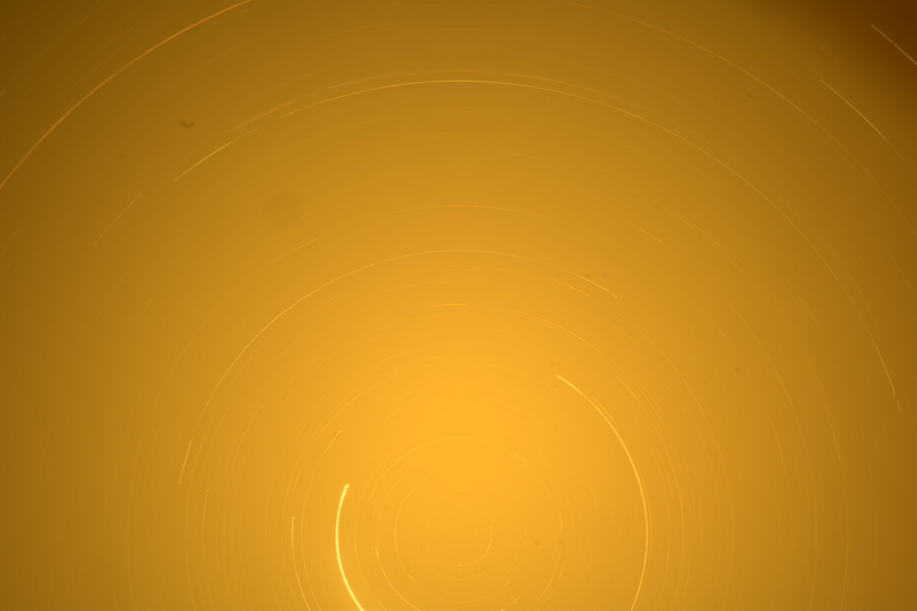 Comme je n'ai pour l'instant ni monture équatoriale ni tube... et que j'ai juste mon zoom 300mm, j'ai retesté une circum polaire 60 poses de 300s chacunes (5 heures) dans mon jardin. Le probleme c'est que j'ai récupéré une grosse pollution lumineuse due aux lampadaires de la rue.... Il faut donc que j'apprenne à traiter les images maintenant (d'accord, c'est le jeu...normalement, on ne commence pas l'astro en faisant une caméra et en apprenant le reste aprés...)