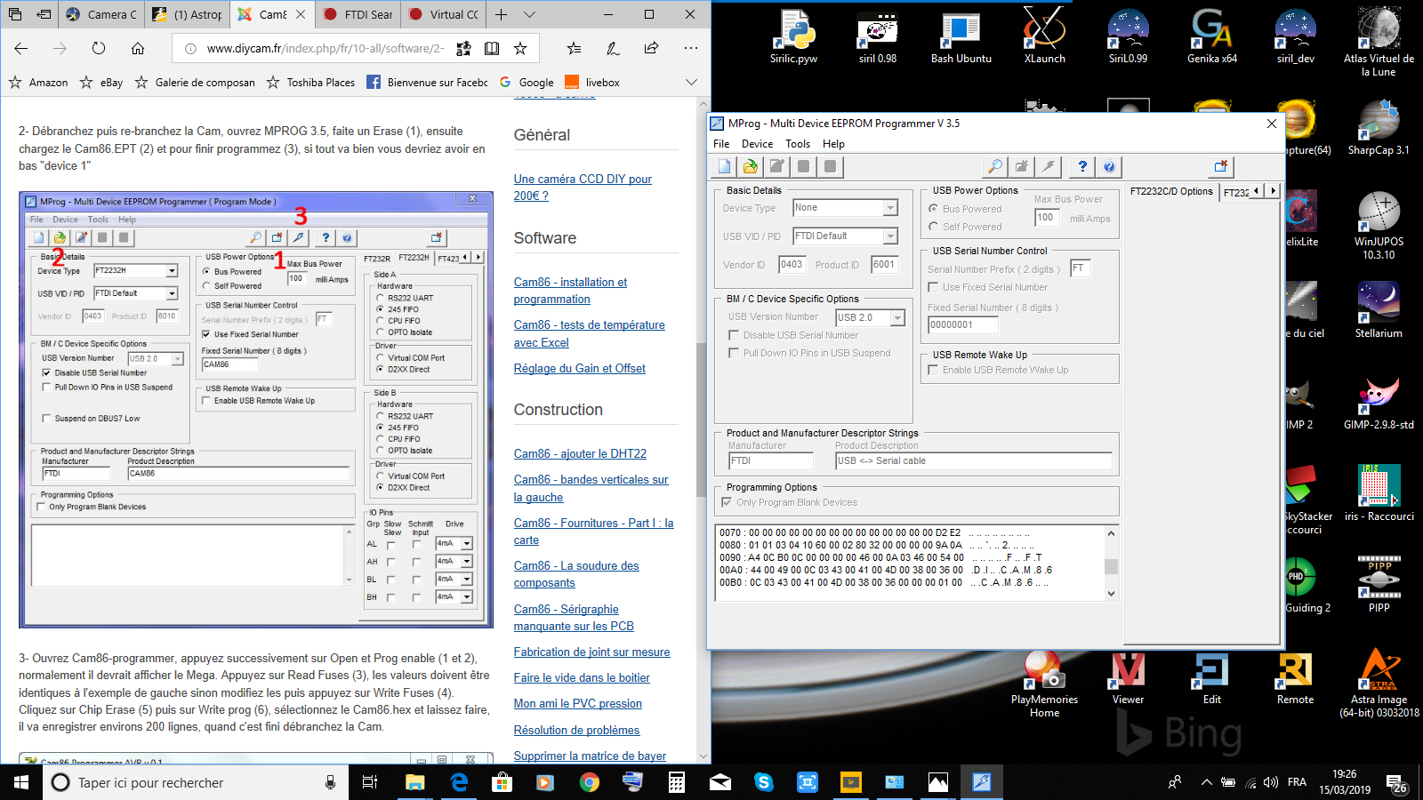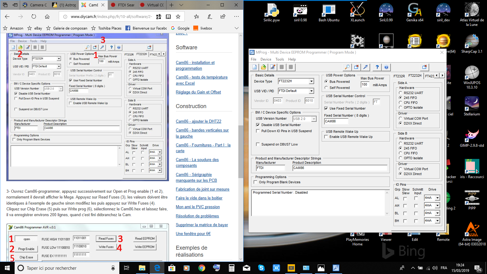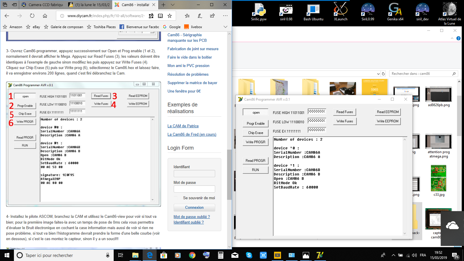 Ce matin j'ai marcher, un peu de sport sur tout quand on bouge pas trop en semaine ca fais du bien , donc j'ai pas passer trop de temps, la je feignasse un peu devant l'ordi et je vais un peu relire, m'avais sembler avoir vu que windows reconnaissait les ports a et b comme cam 86 après le firmware et me remettrai après.