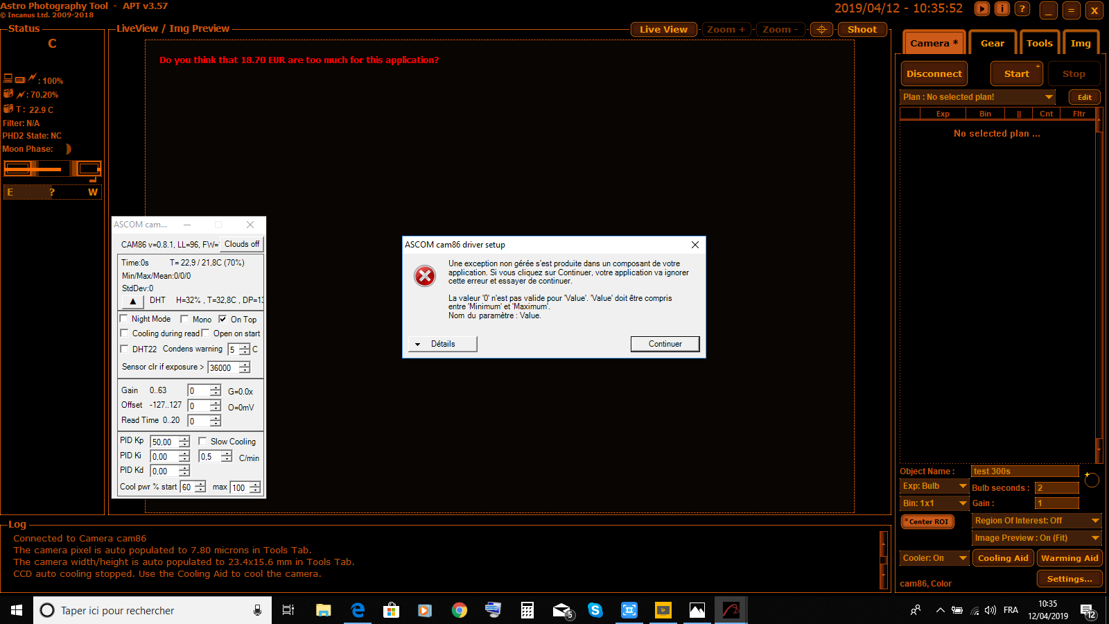 J'ai essayer de réinstaller le driver ascom pensant que cela se remettrai tous seul mais non cela na pas marcher