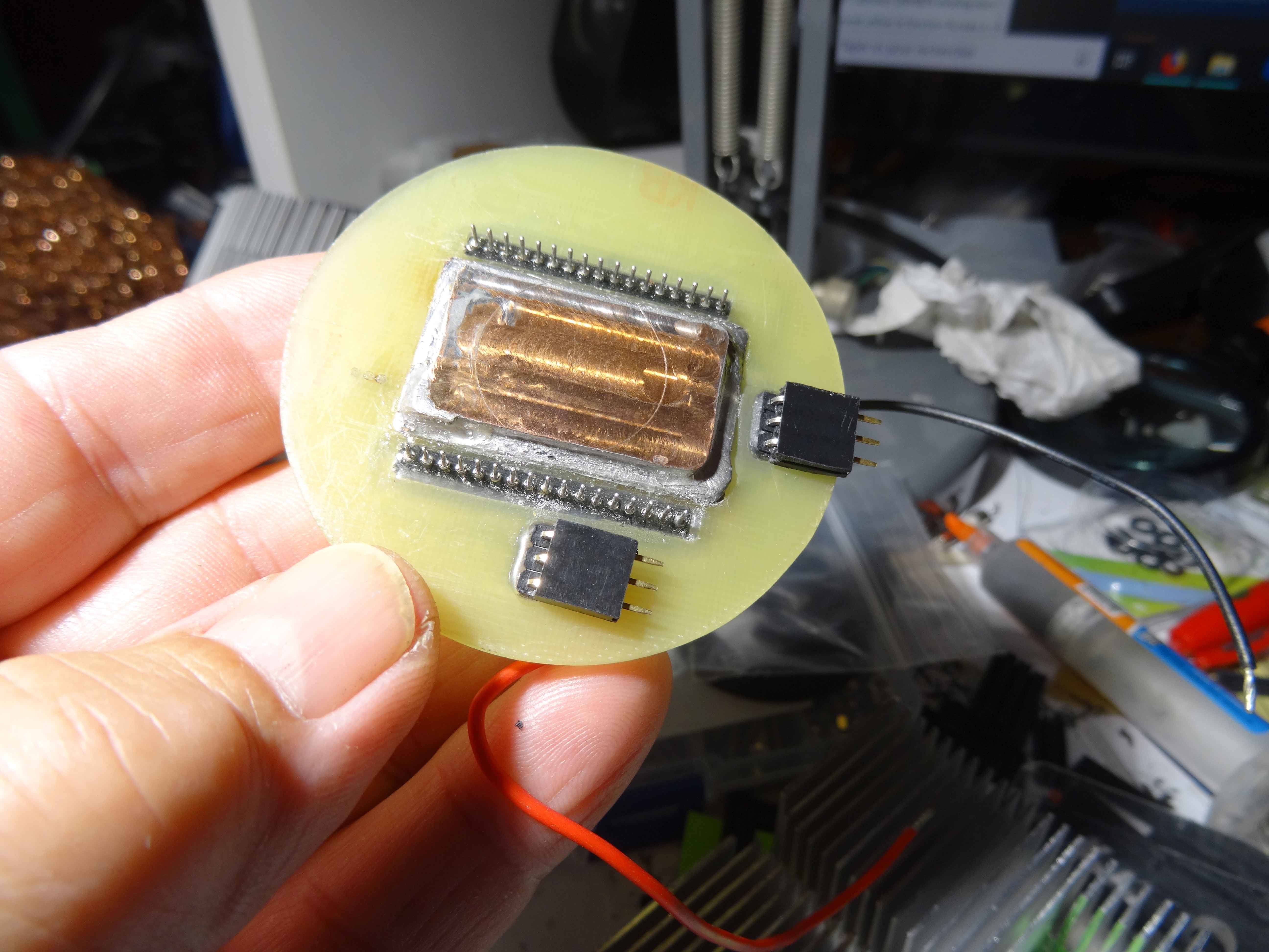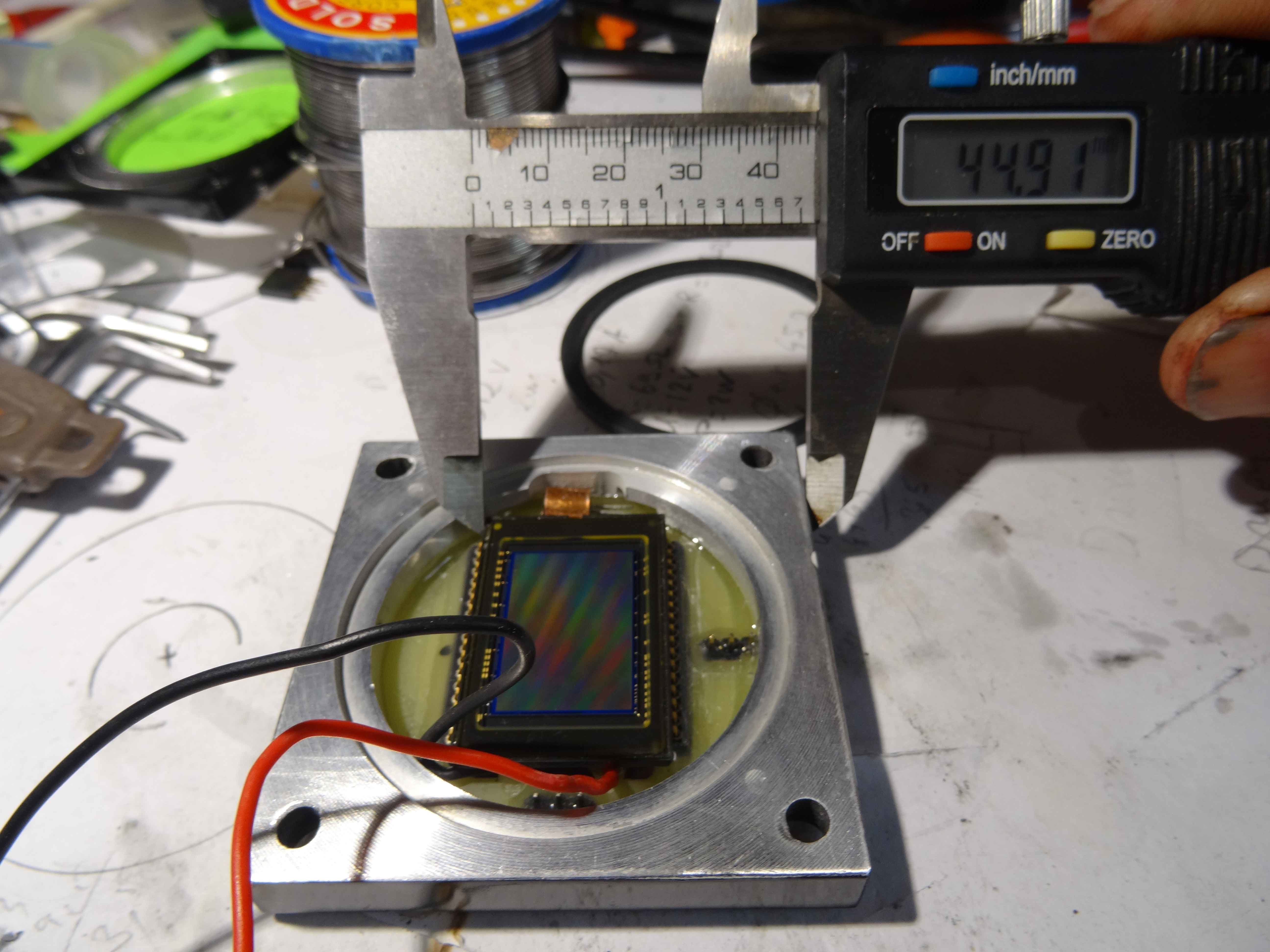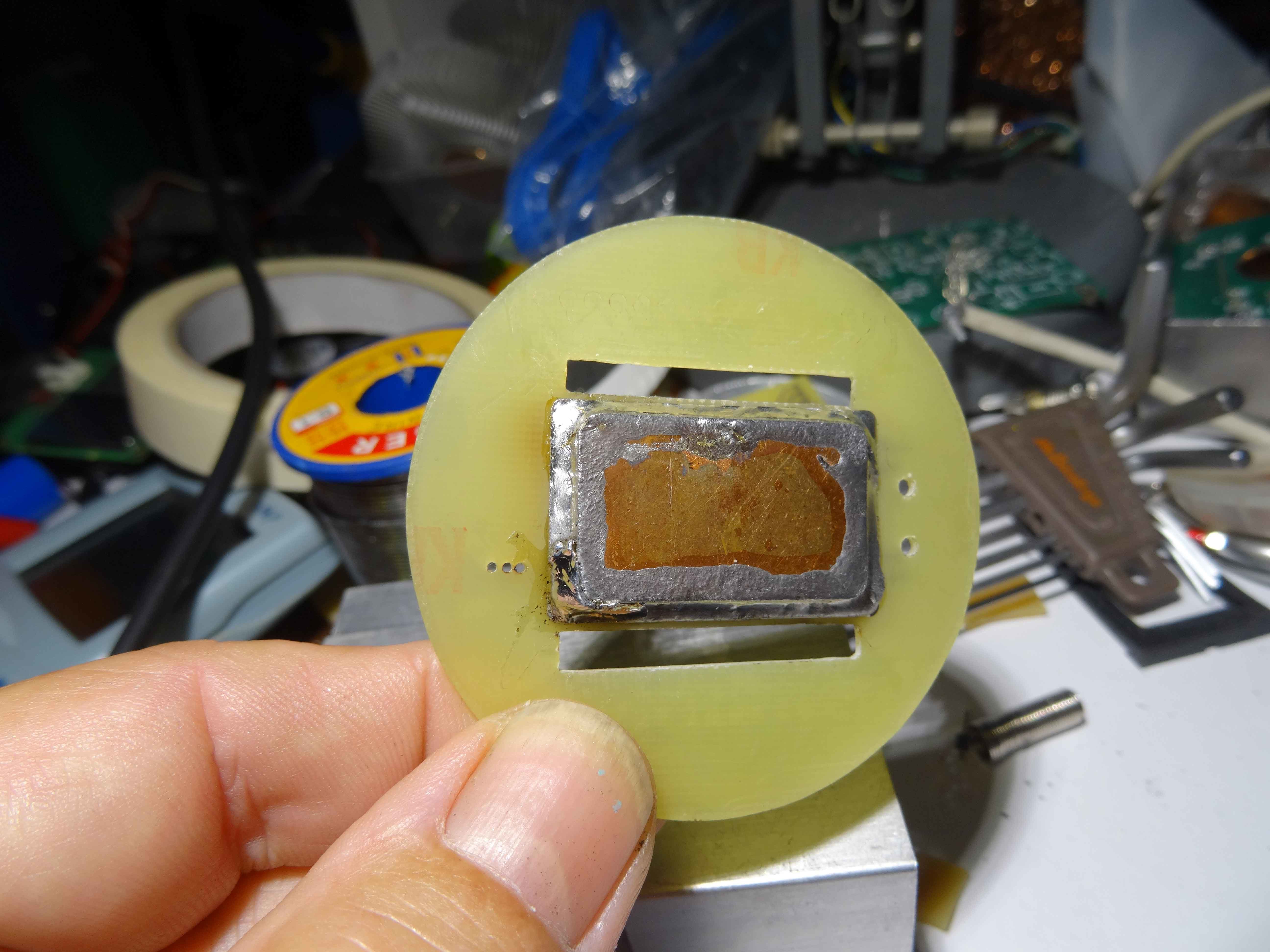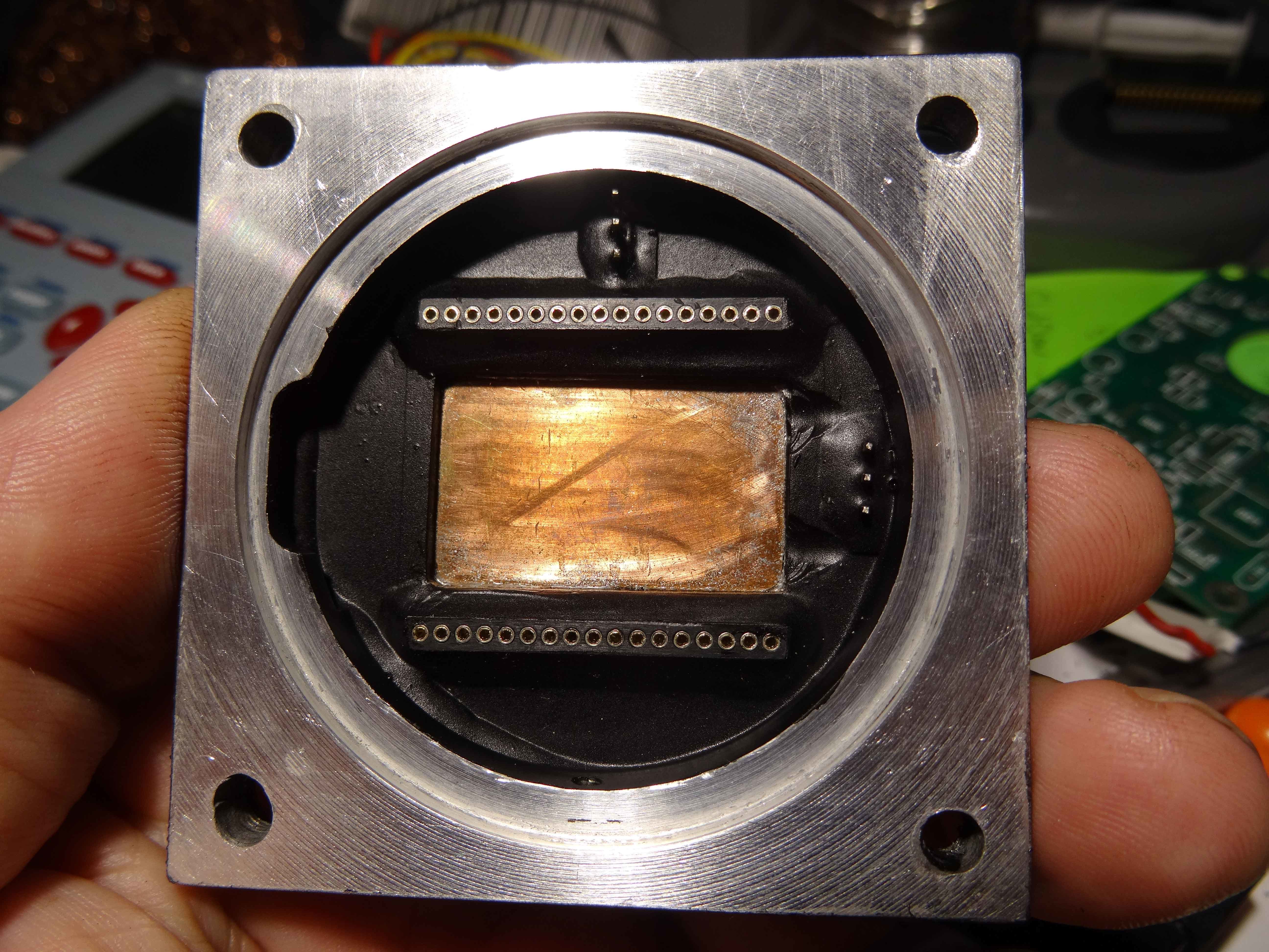 Voilà un peu dans le désordre , mon boitier capteur qui sera sous argon dés que ma pompe à vide refonctionnera (d'ici demain je pense)... Sur ce boitier viendra se connecter la carte et l'ensemble se retrouve dans le boitier lui même.....A suivre donc!!!