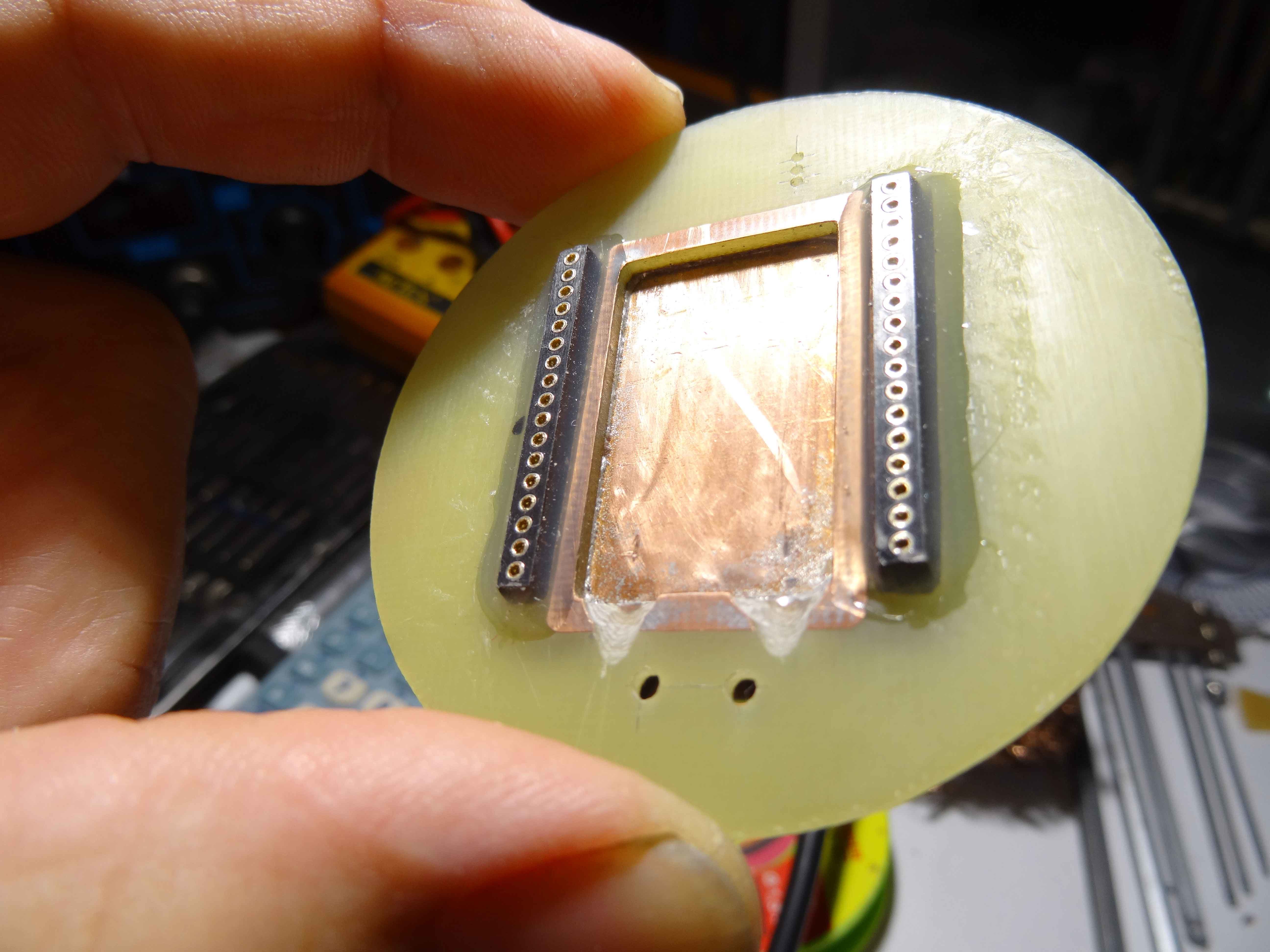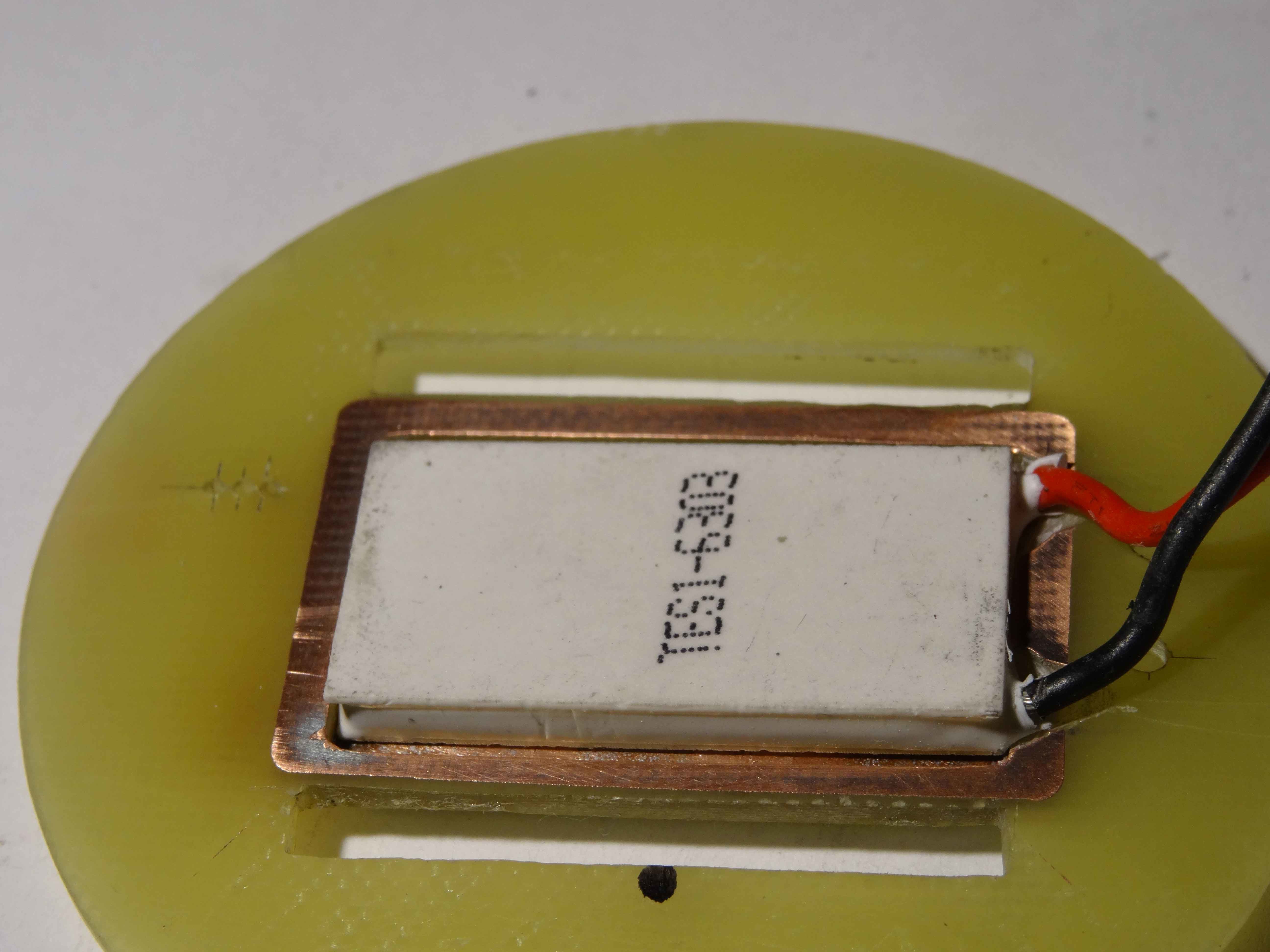 Collage des connecteurs du Peltier et du DS18B20....cotè extérieur...