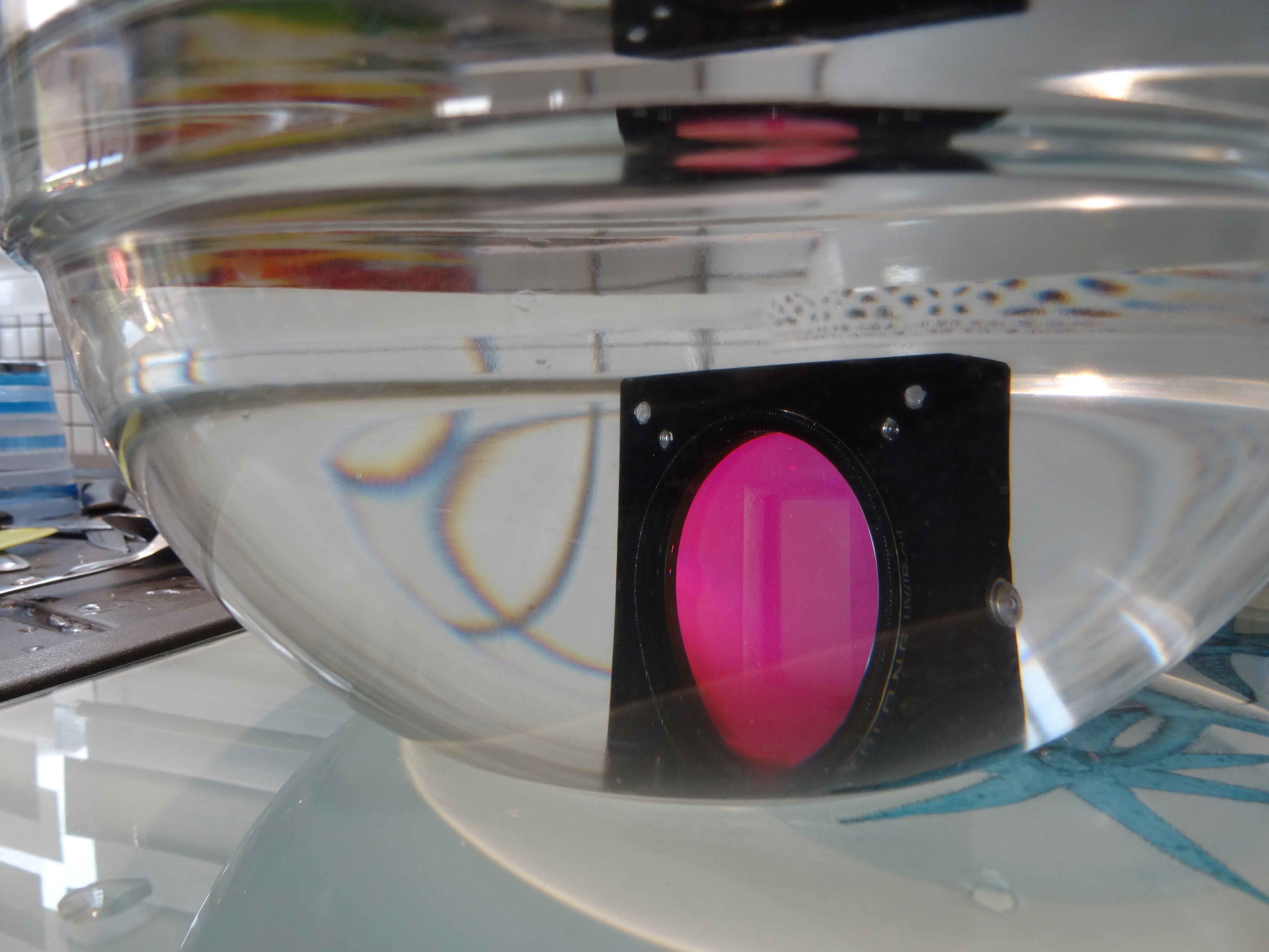 Le tout est mis sous l'eau pendant 24 heures pour tester l’étanchéité. pas de bulles et après ouverture pour contrôler l’intérieur, RAS...c'est tout bon.... On voit sur la droite un des bouchons pour le vide et l'argon...