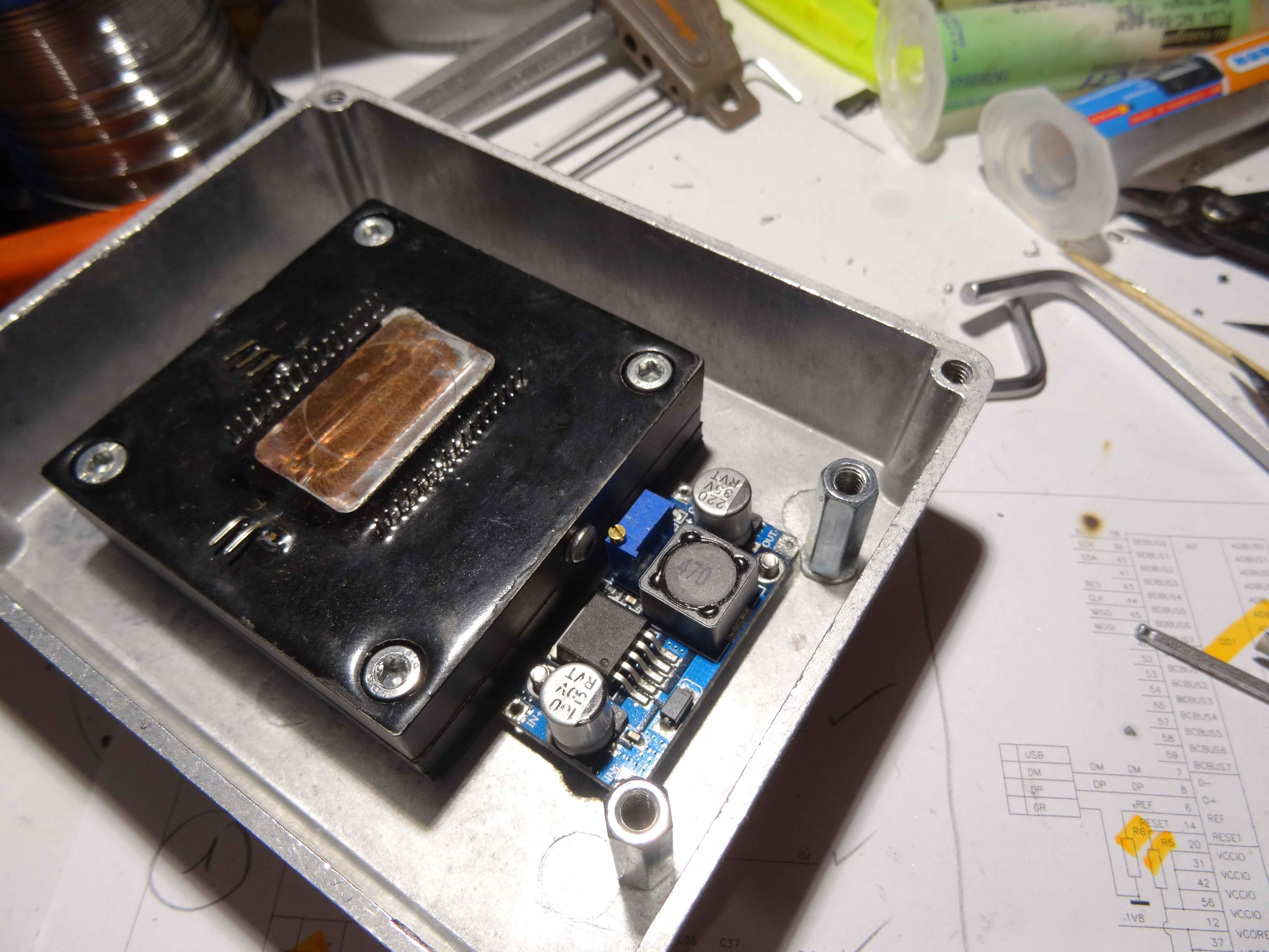 Pour ma part j'ai utilisé un boitier alu que j'avais en "fond de stock" dans mon bordel, il est comme le Hammond mais plus grand,cela me donne plus de possibilité. Je l'ai juste rehaussé en impression 3D (ABS)...ce boitier se vend toujours sur Ali...il existe maintenant en plus profond...
