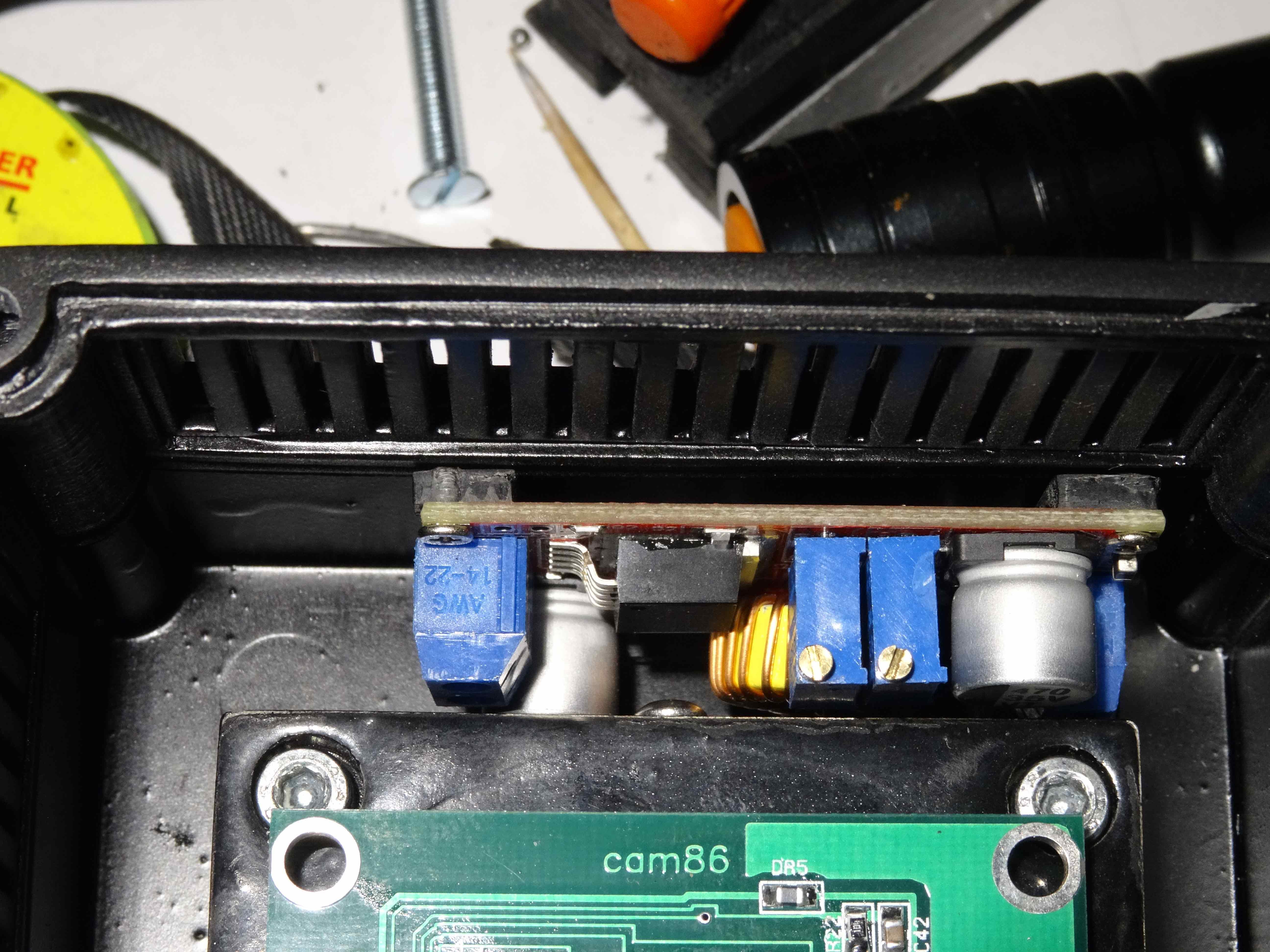 J'ai fait "tourner " la CAM86 pour voir comment se comporte le refroidissement... Il m'a fallut rehausser le ventilateur de 7 mm environ pour obtenir ceci :