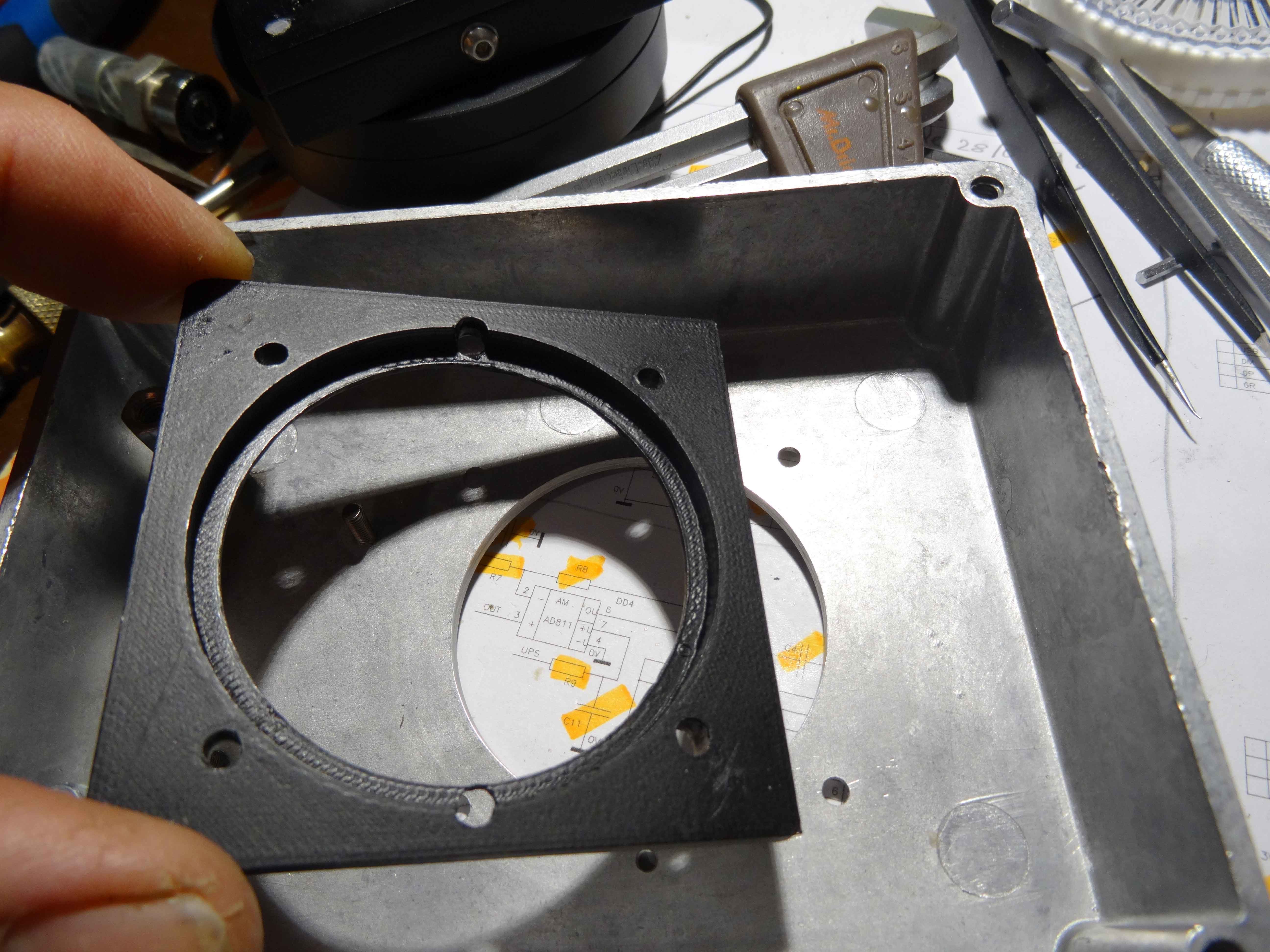 J'ai fabriqué une cale d'épaisseur en 3D pour récupérer la hauteur de dépassement de la bague du hublot...( voir sur les photos précédentes)