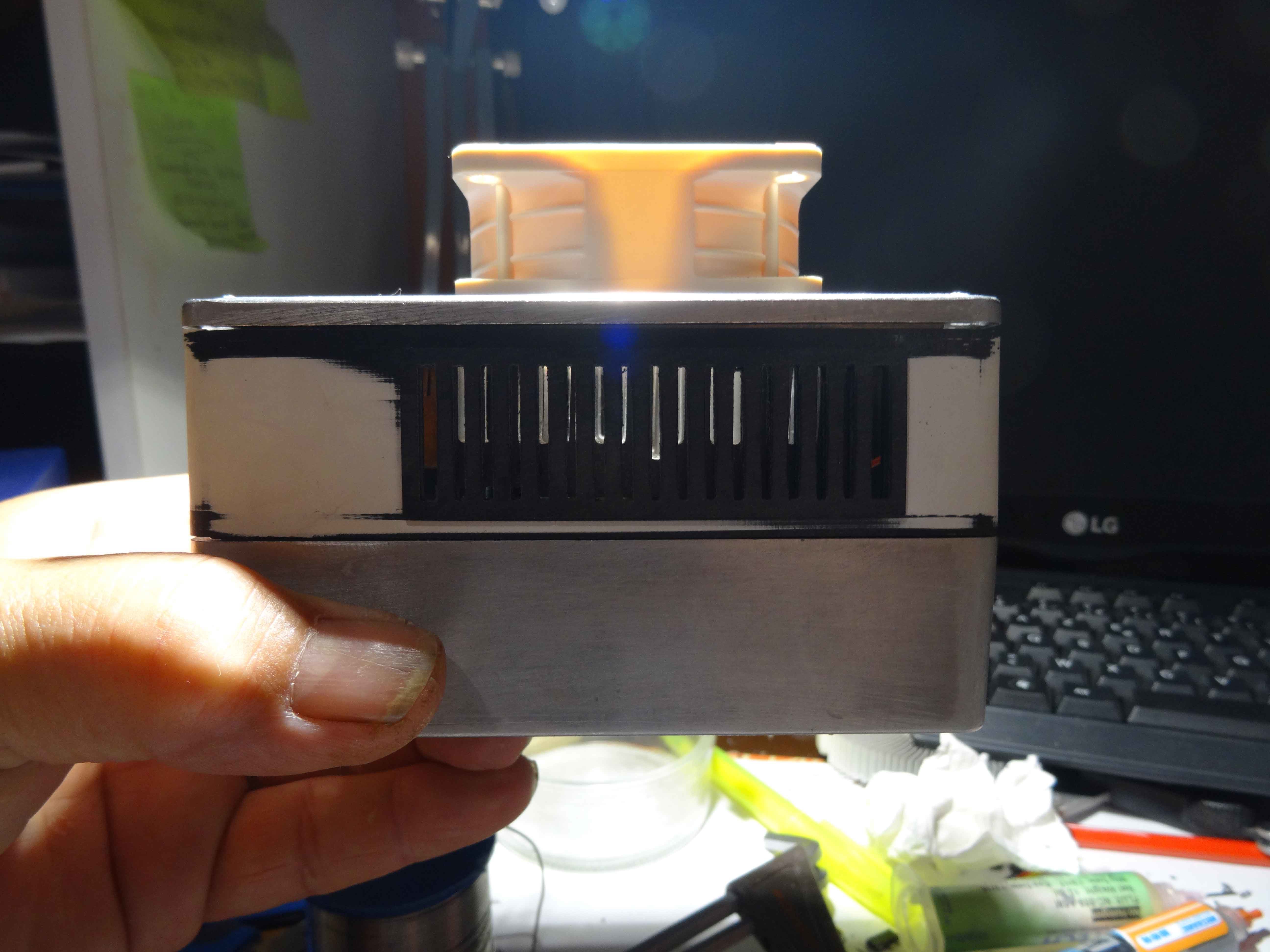 Le boitier en lui même... Au départ je possédais ce boitier alu et j'ai donc travaillé autour de celui-ci ...J'ai fait une rehausse en impression 3D en y intégrant des grilles d'aération....