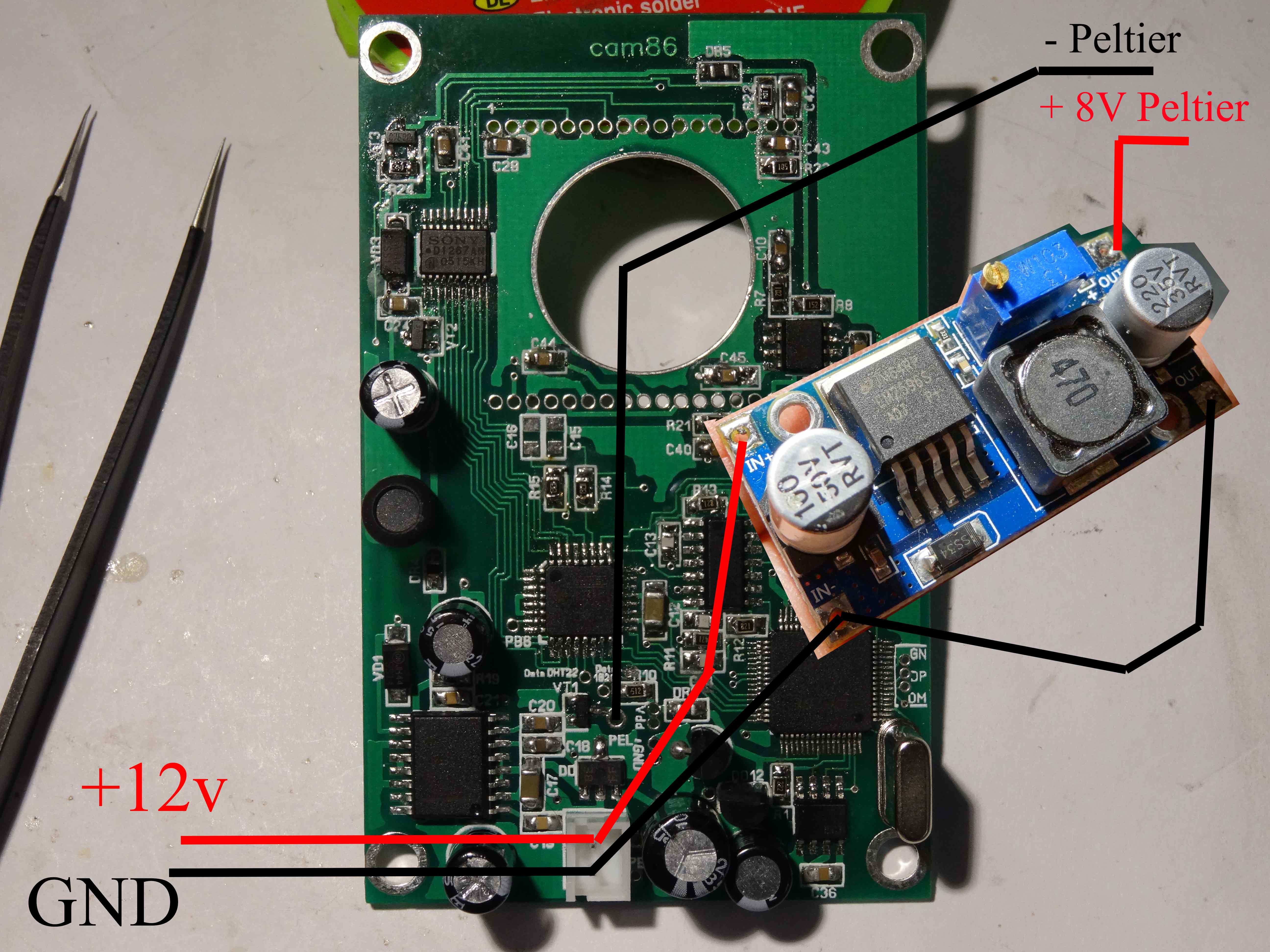 Mon Peltier fonctionne sous 6,7V au lieu de 8,6V qui est sa tension Max... Courant absorbé 1,6A , pour 3A Max donnée fabricant et 2,7A mesurés en le branchant en direct sans passer par la gestion de la carte...