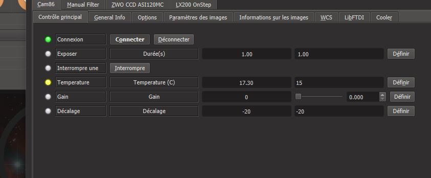 Pour le refroidissement la commande marche bien, mais j ai du mal a respecter la temperature demande parfois... mais c etais deja le cas avec le pilote ascom, alors je bidouillais avec les valeur du driver et ca marchais pas trop mal ensuite...