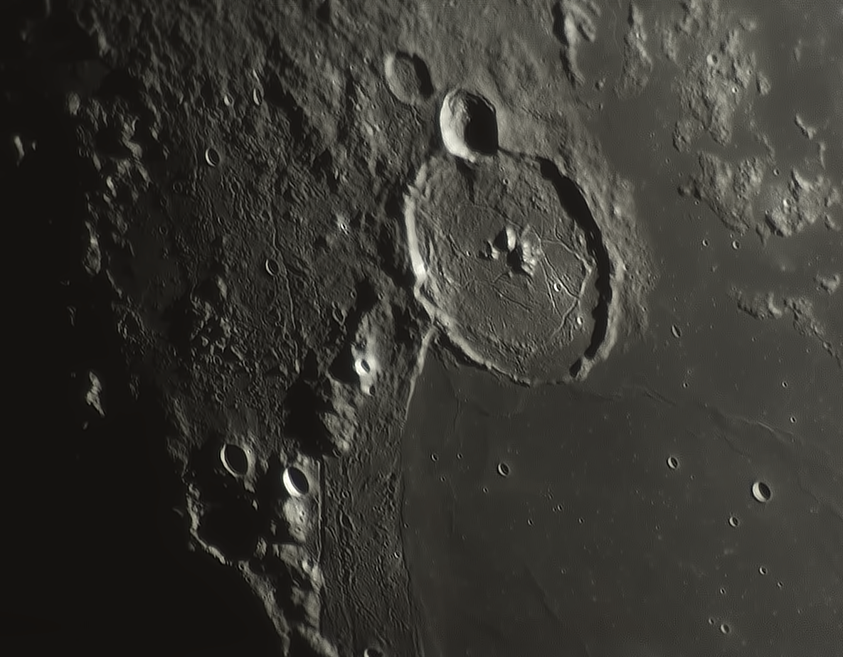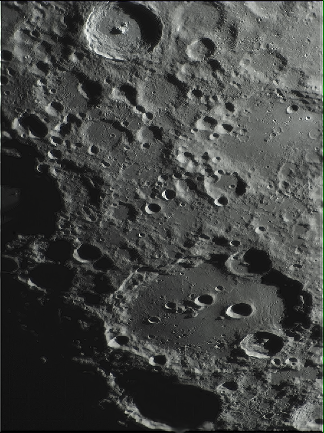 Tiens, un exemple de trucs bizarres : je viens de réussir à extraire ce Clavius du 13/05. Il y a encore ces étranges zones en dégradés par bandes...