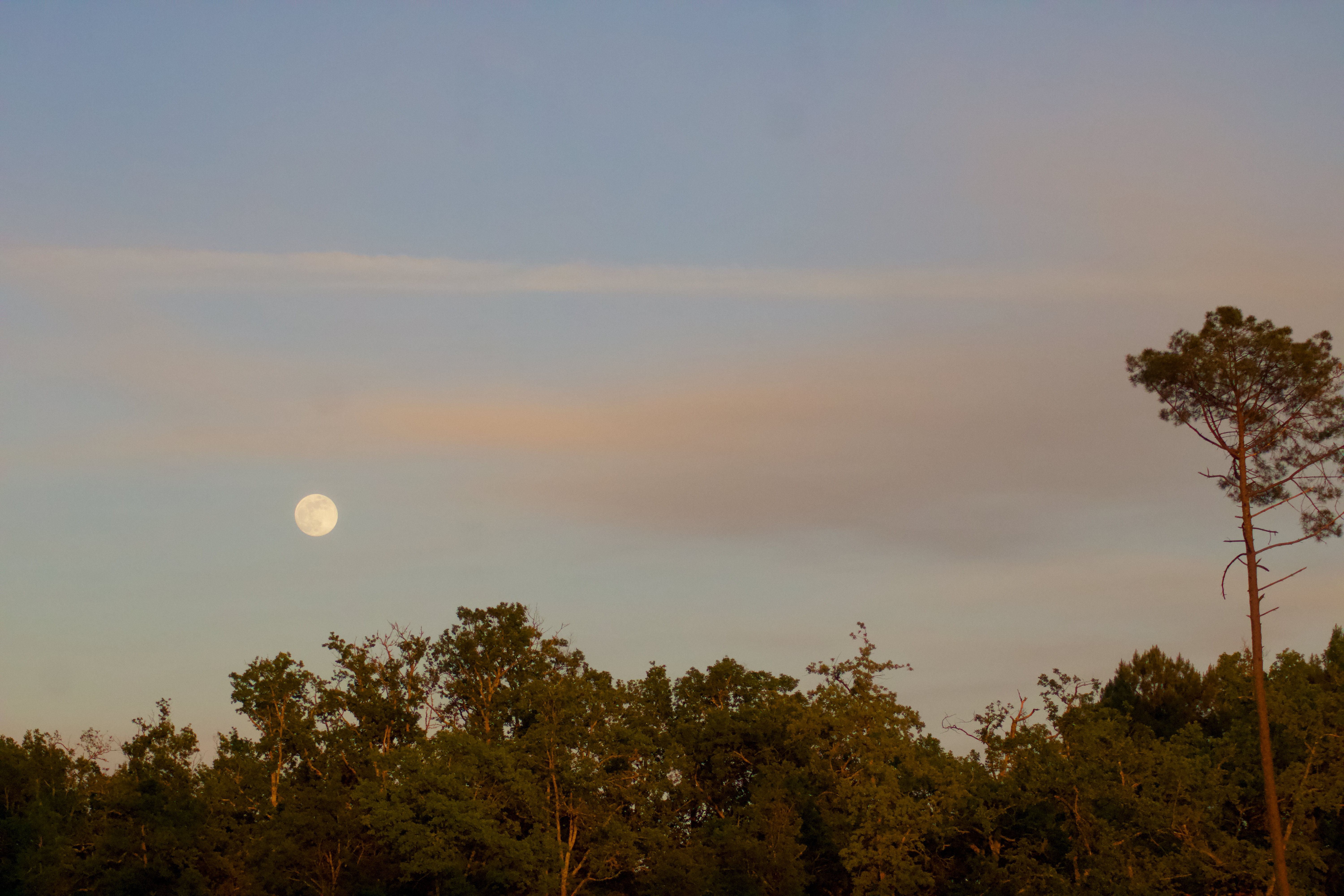 Pas de sortie de telescope hier soir, du coup petits paysages lunaires à la place, avec le coucher du soleil qui éclaire la forêt :)
