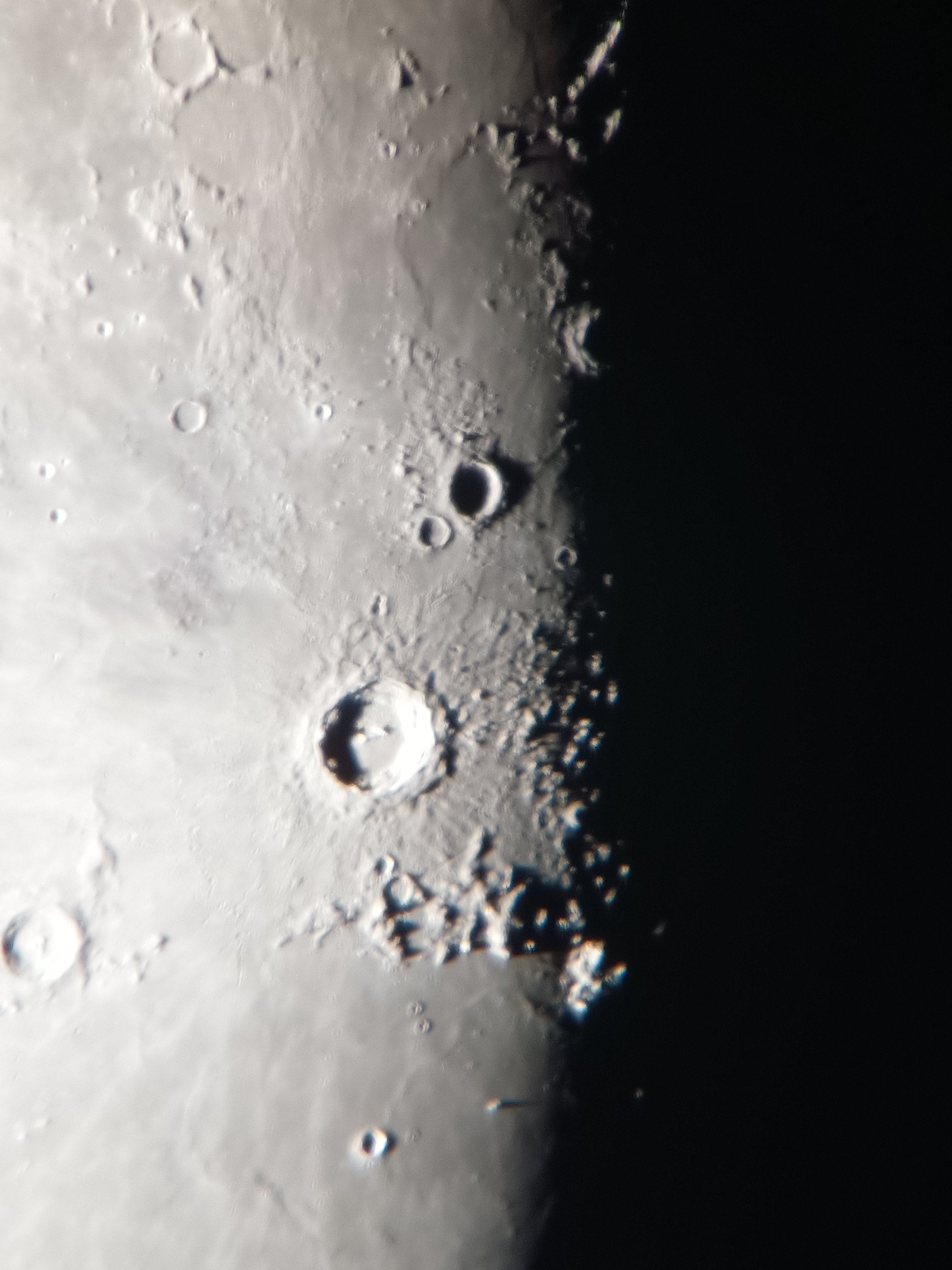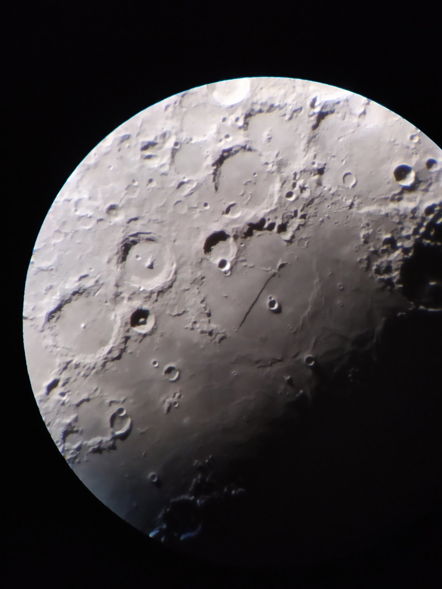 Le mur droit hier soir au bord du terminateur , Skywatcher 200/1000 + TMB 4mm + barlow X2 + Xiaomi Redmi Note 8 tenu à la main   :