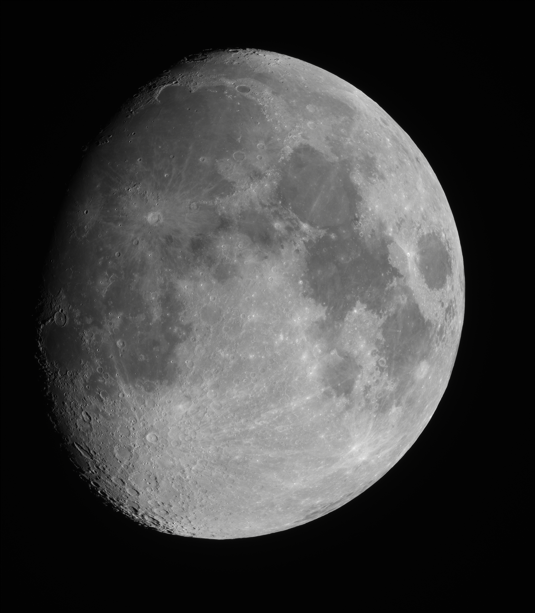 La Lune du 12 février 2022 imagée toujours avec le même équipement (Lunette Takahashi FC-76DCU sur monture équatoriale Vixen GDP2 + Caméra Zwo Asi 485MC + Filtre Baader UV/Ir-Cut/L).