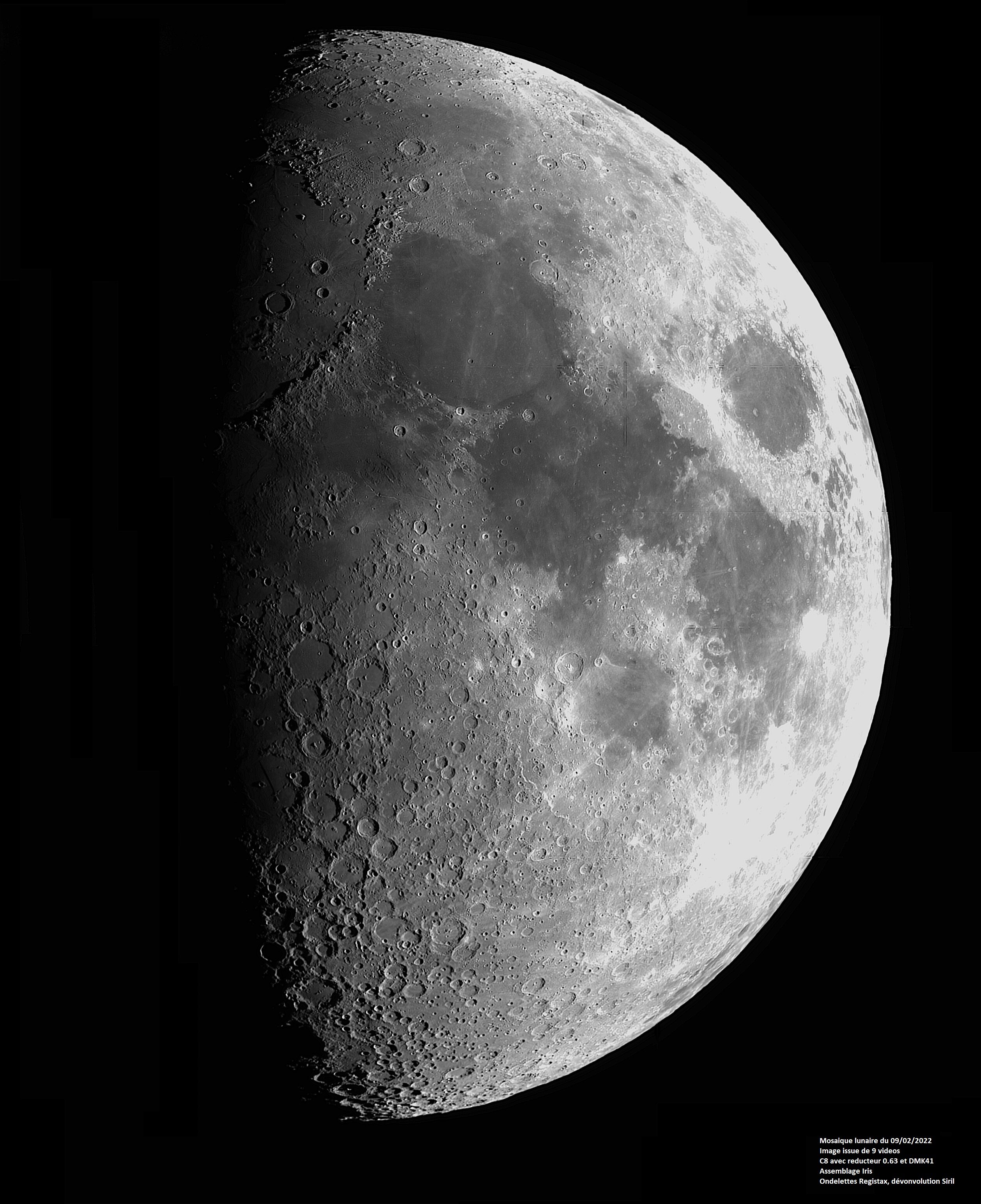 Une petite mosaïque du 09/02, je vous la montre même si je ne suis pas vraiment satisfait, j'ai galéré pour l'assemblage (on voit les bords des images mais je n'ai pas réussi à les supprimer ) et mauvais réglage à l'acquisition (parties saturées).