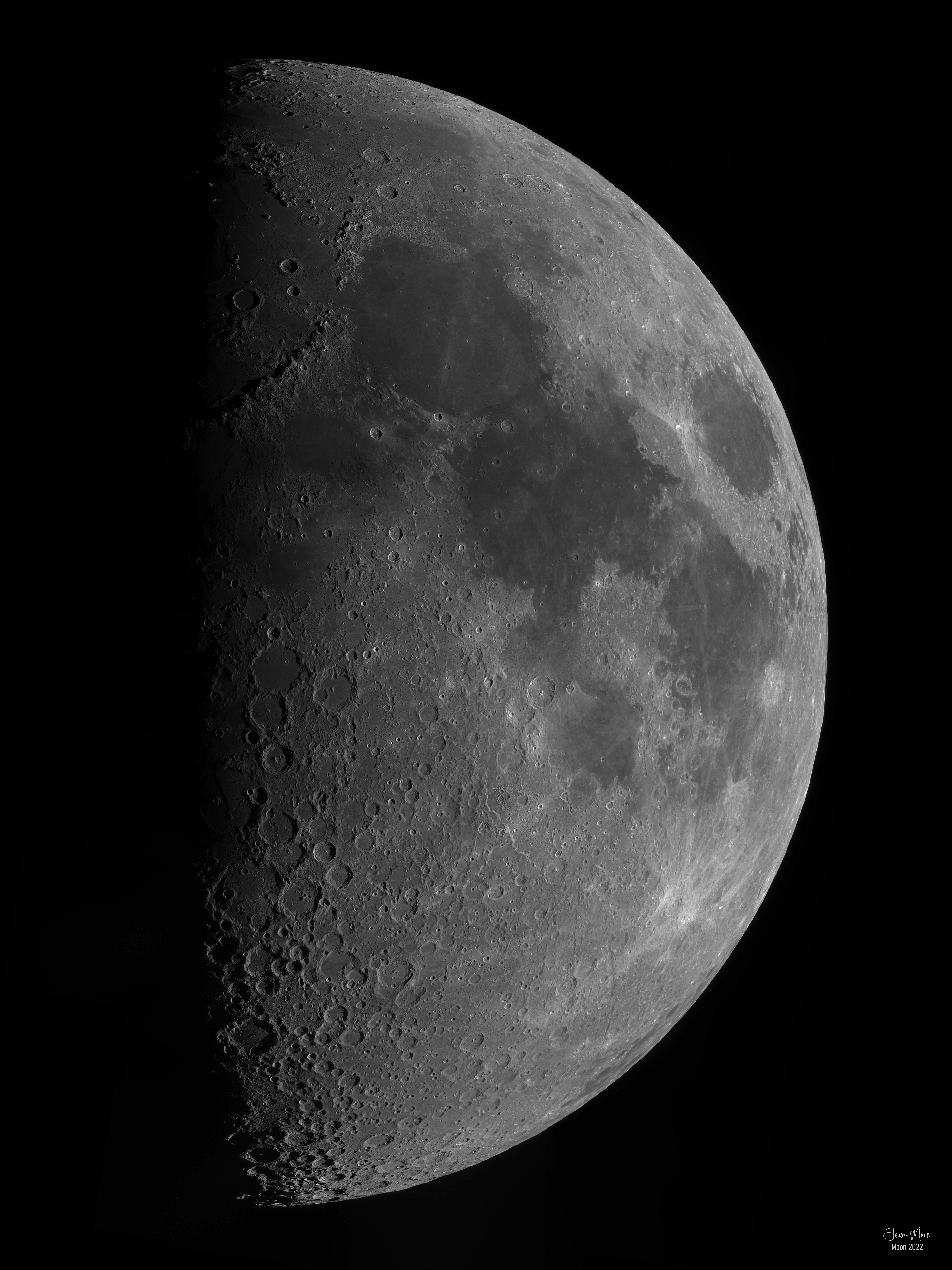 Et ben cette fois, il s’agit d’une image récente du 10 mars 2022 (a peine 2 semaines d’age). Lors d’une semaine miraculeuse avec 5 nuits d’affilées sans nuage. Miracle qui s’est reproduit cette semaine en mieux avec 7 nuits. Mais revenons a nos moutons. Je continue mes mosaïques de Lune. Elle est presque complète mais en trichant un peu ça ne se voit pas. Elle consiste en 46 tuiles pris au cul de mon maksutov 180/2700 directement, sans barlow, avec ma QHY290 III.