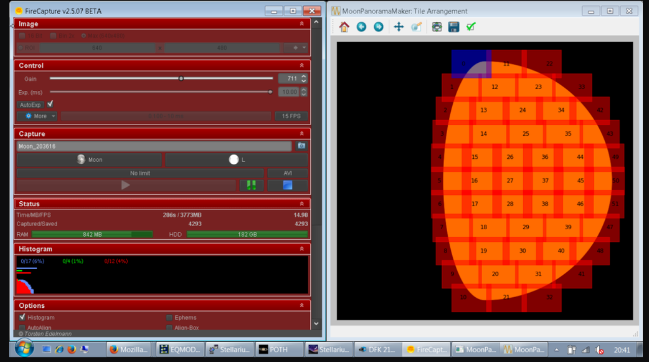 Chaque tuile consiste an un fichier d’un Go. toujours pour renter dans les 50 Go d’espace disque dispo. Pour le traitement je règle AS3! en resample x2, construit la moza sous ICE, post traitement sous AstroSurface et finitions sous Gimp.