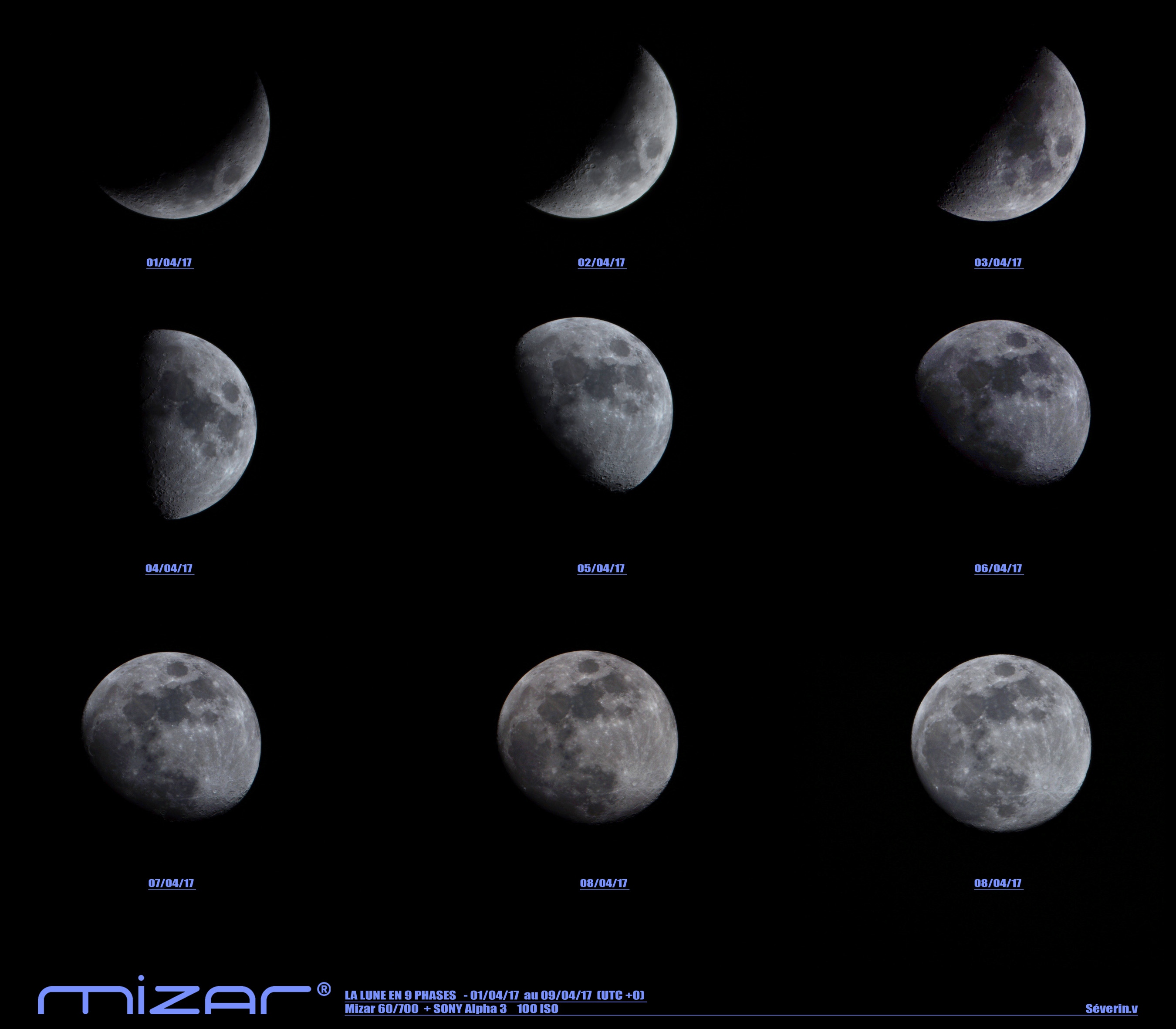 La lune en 9 phases + conjonction lune/jupiter pour la dixième: