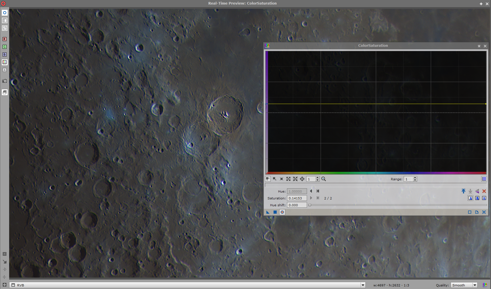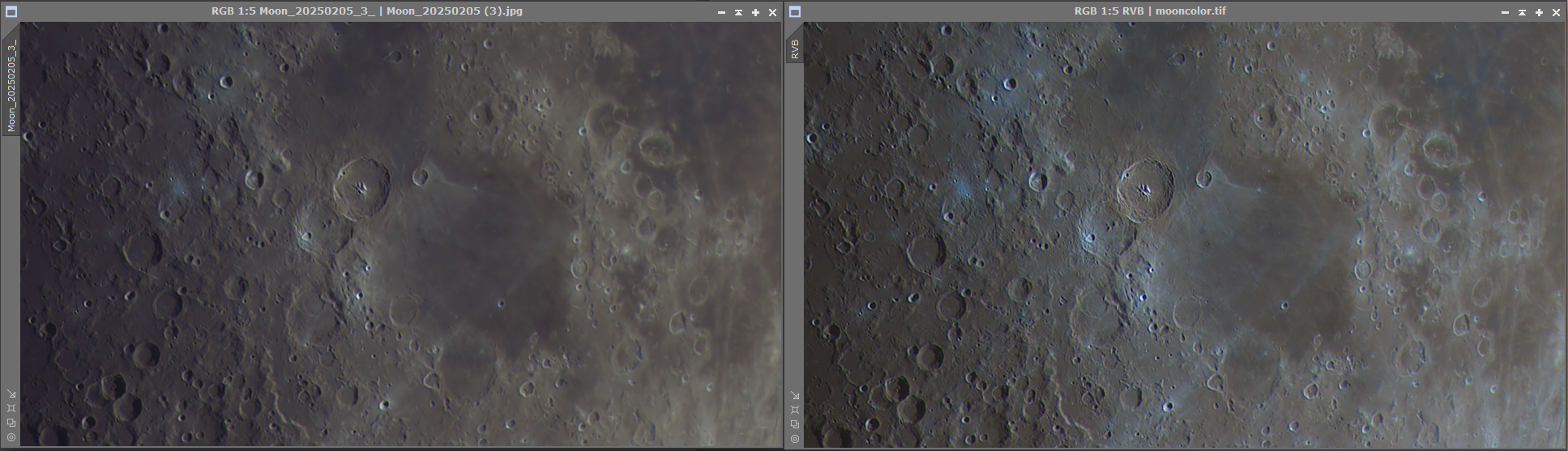 Autre truc, il y a des zones de la Lune plus colorées que d'autres. Ca ne servira pas à grand chose d'essayer de saturer ce qui n'existe pas..