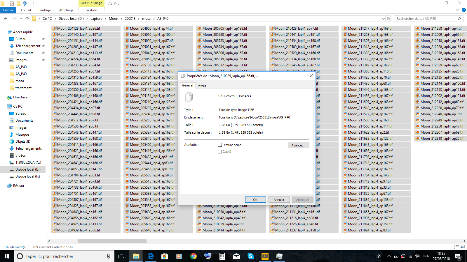 En attendant la King Size mosaïque, j'ai réussi grâce à AstriSeb (marque déposée) à "sauver" deux fichiers du 26 capturés complètement à l'arrache à travers les nuages avec l'Intes et barlow en vraie x2.