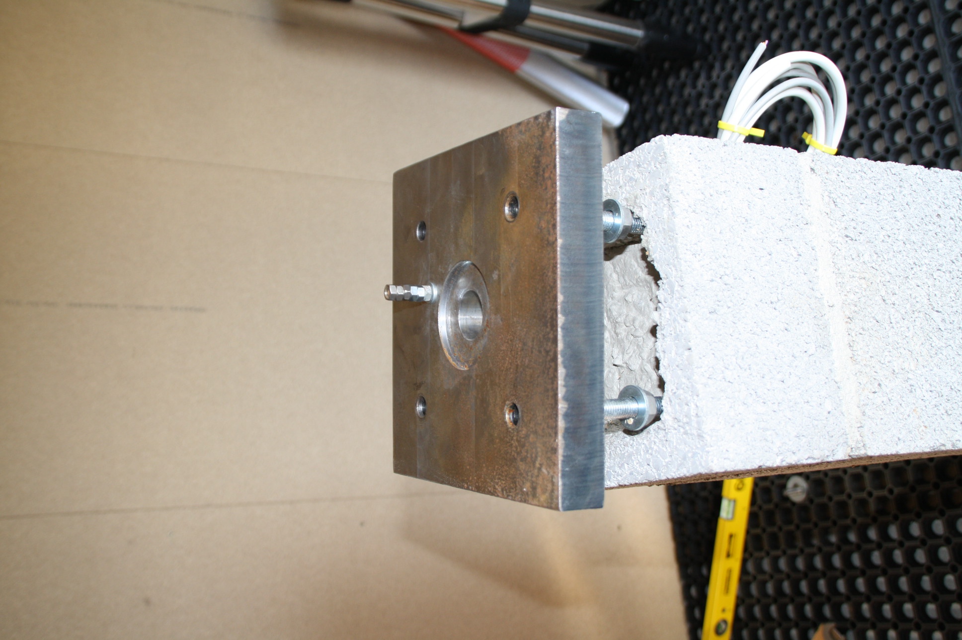Je ne vois pas bien comment est fixée ta platine au pied en béton. Je vois bien les tiges filetées qui sortent du béton, et j'ai l'impression de voir des trous taraudés dans la platine.