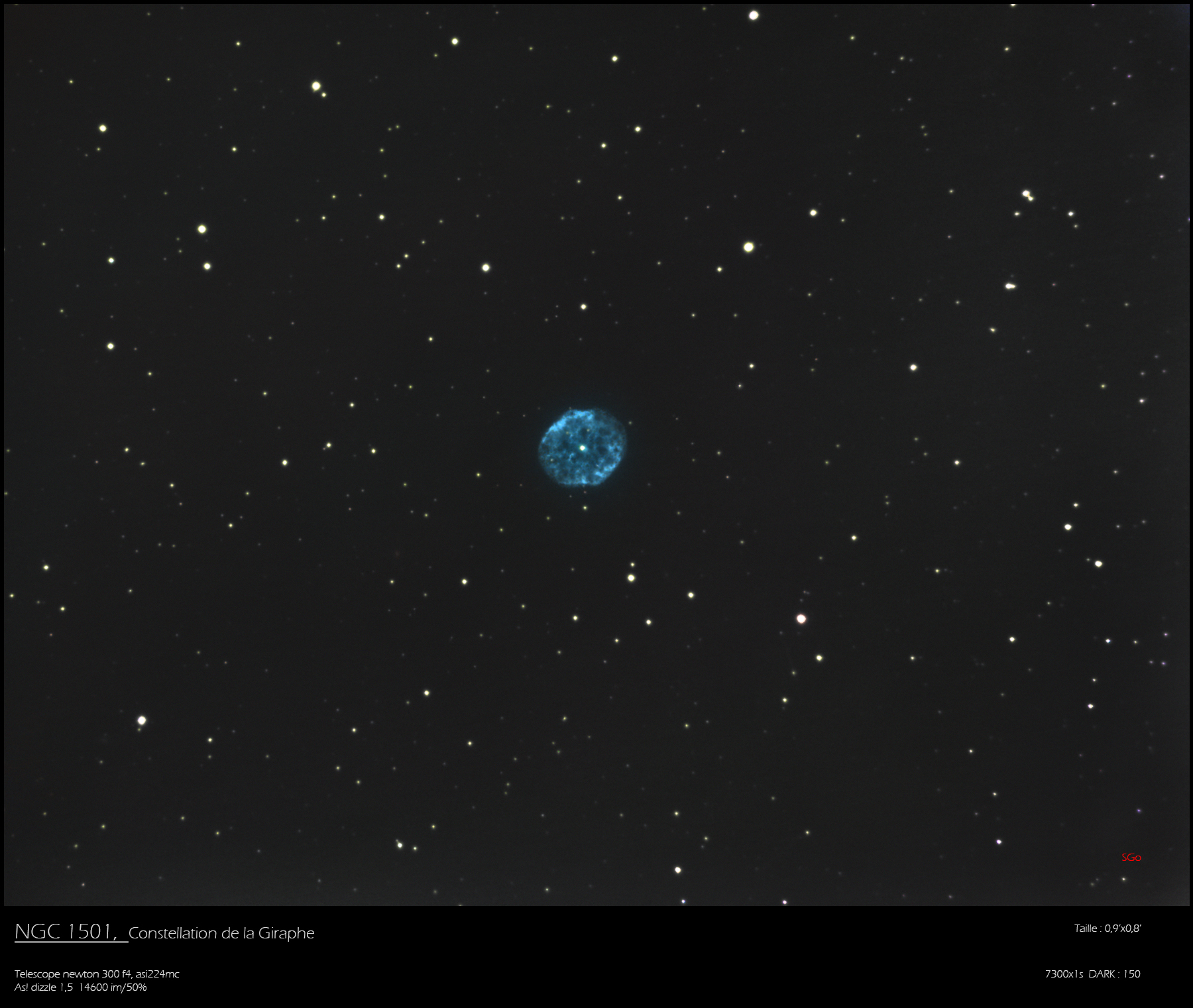 Ma collimation éffectuée je suis parti dans le secteur de la giraphe, pour me concentrer sur la nébuleuse de l'huitre.