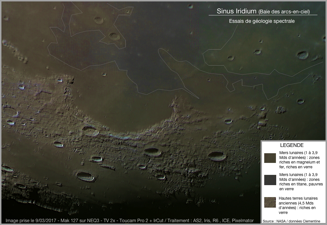 Je te promets d'y réfléchir Stéphane. Il faut que je trouve le moyen le plus simple et le plus clair pour faire une légende qui tienne la route mais avant, je dois creuser un peu plus la correspondance couleurs/matériaux et pour ça, je dois lire un bouquin assez épais et en anglish sur la géologie lunaire. Je ferai ça cet hiver.
