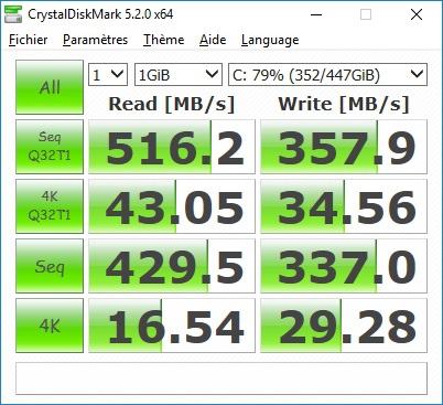 ici un test du MX300 525Go (le plus "lent" des 4) et du EVO 850 (le plus rapide des 4). Tu peux voir que la différence est faible.