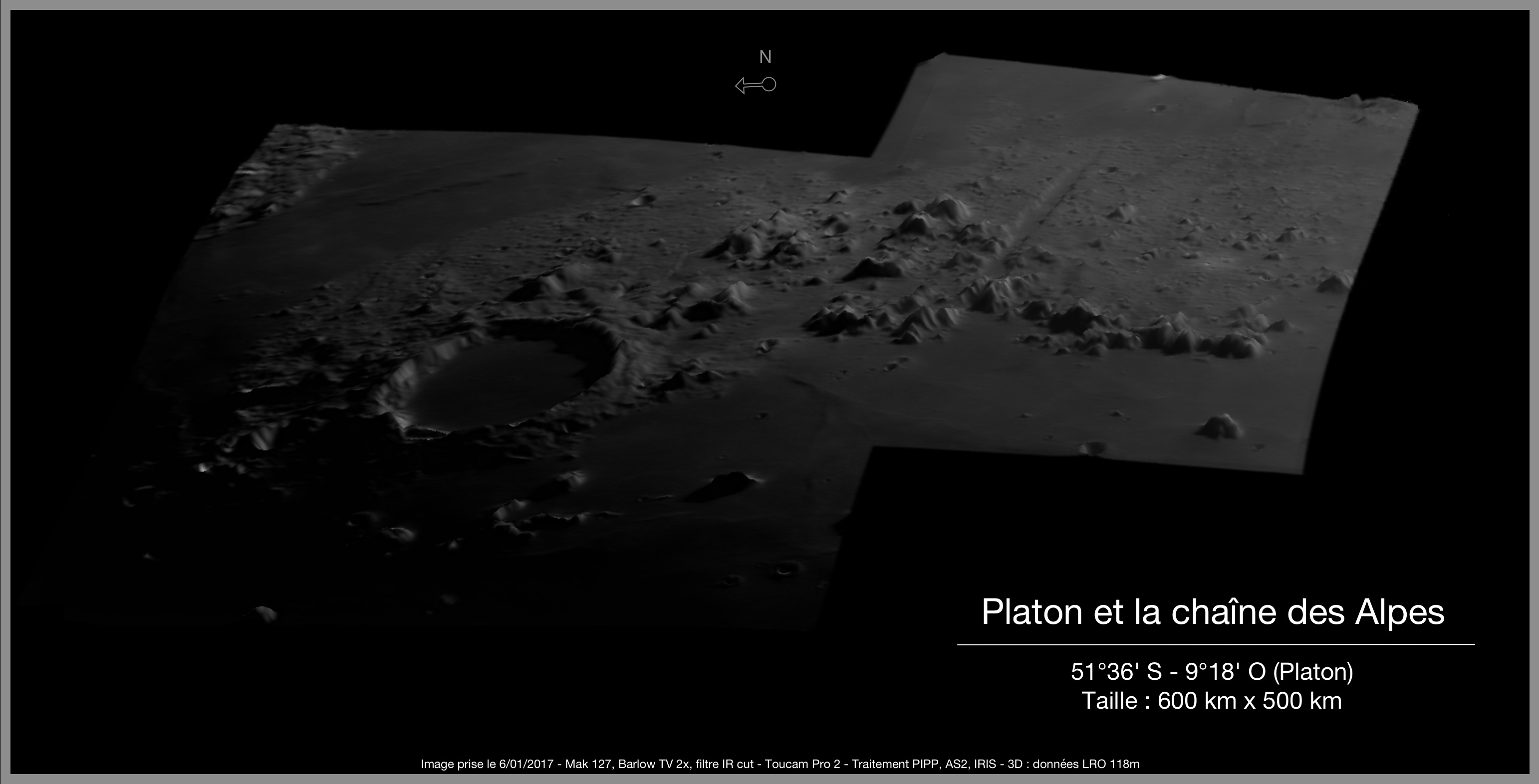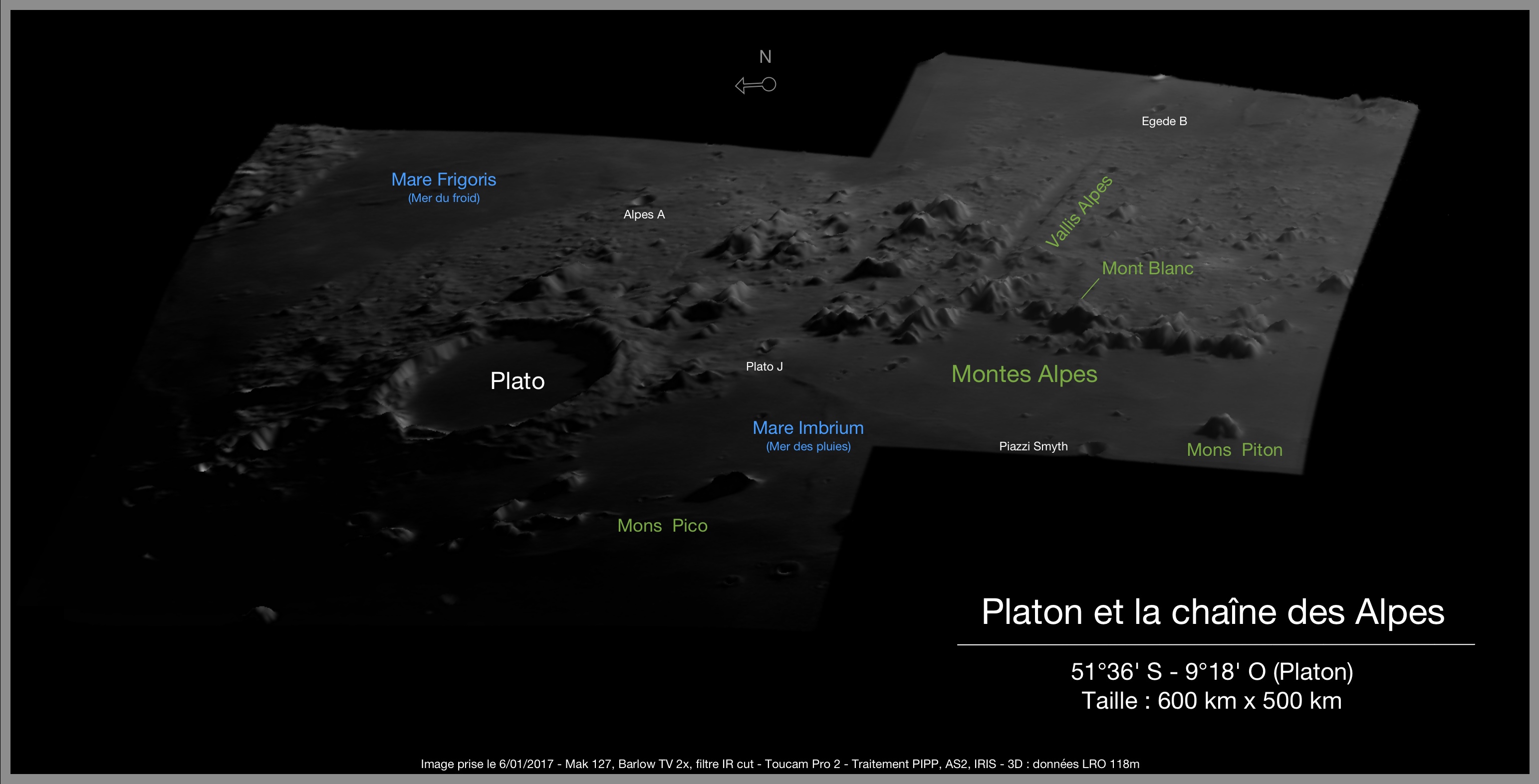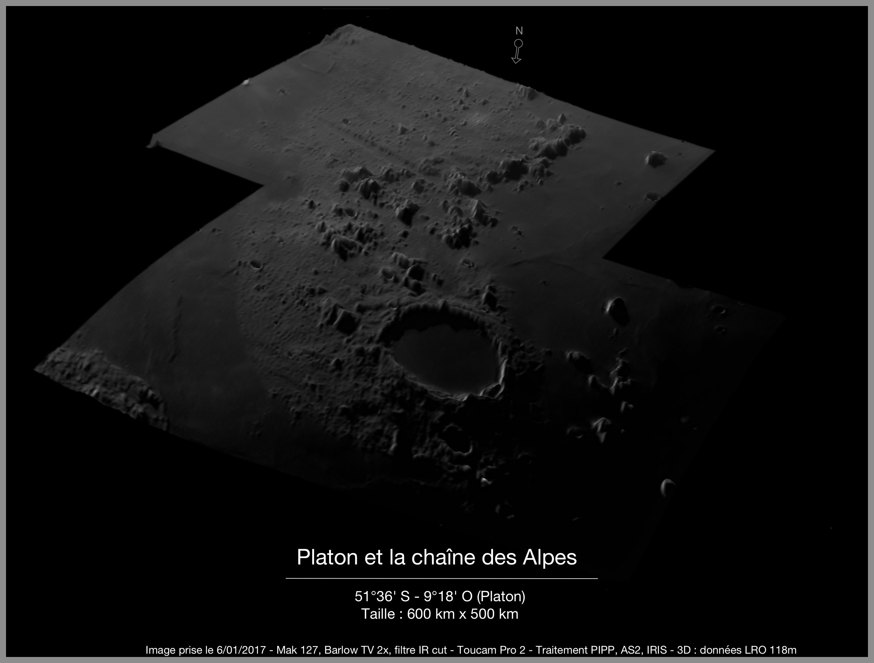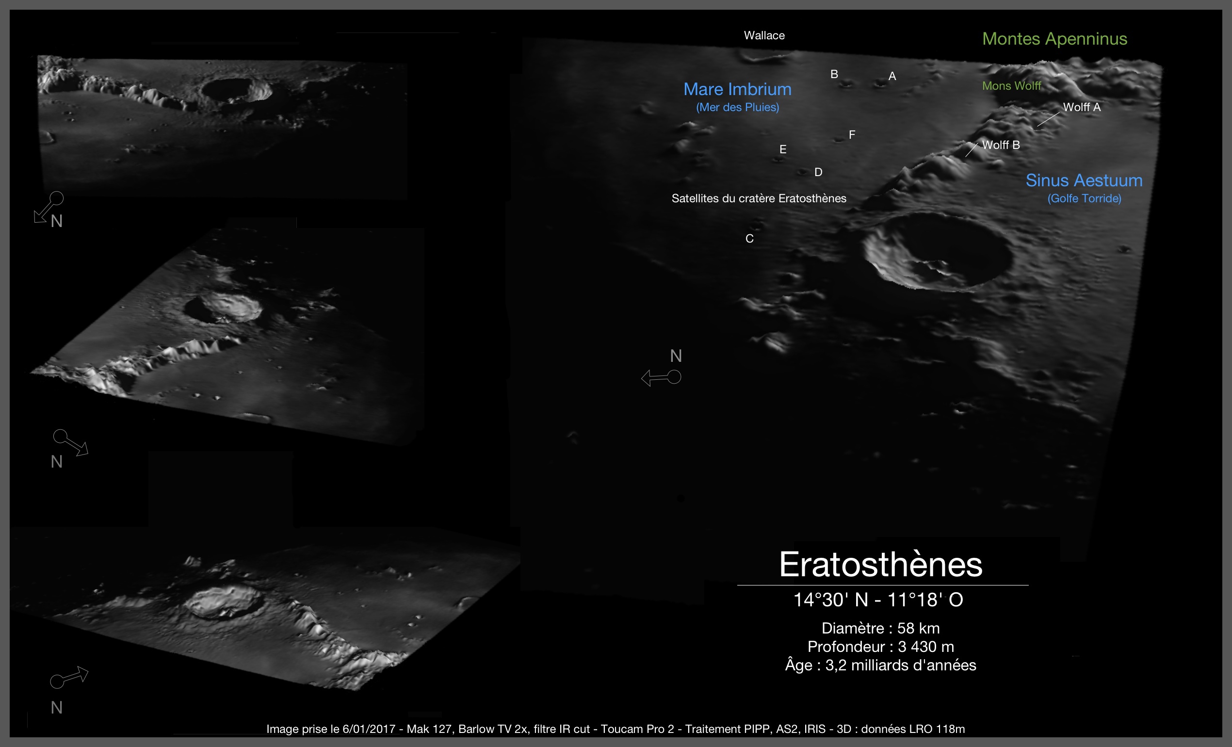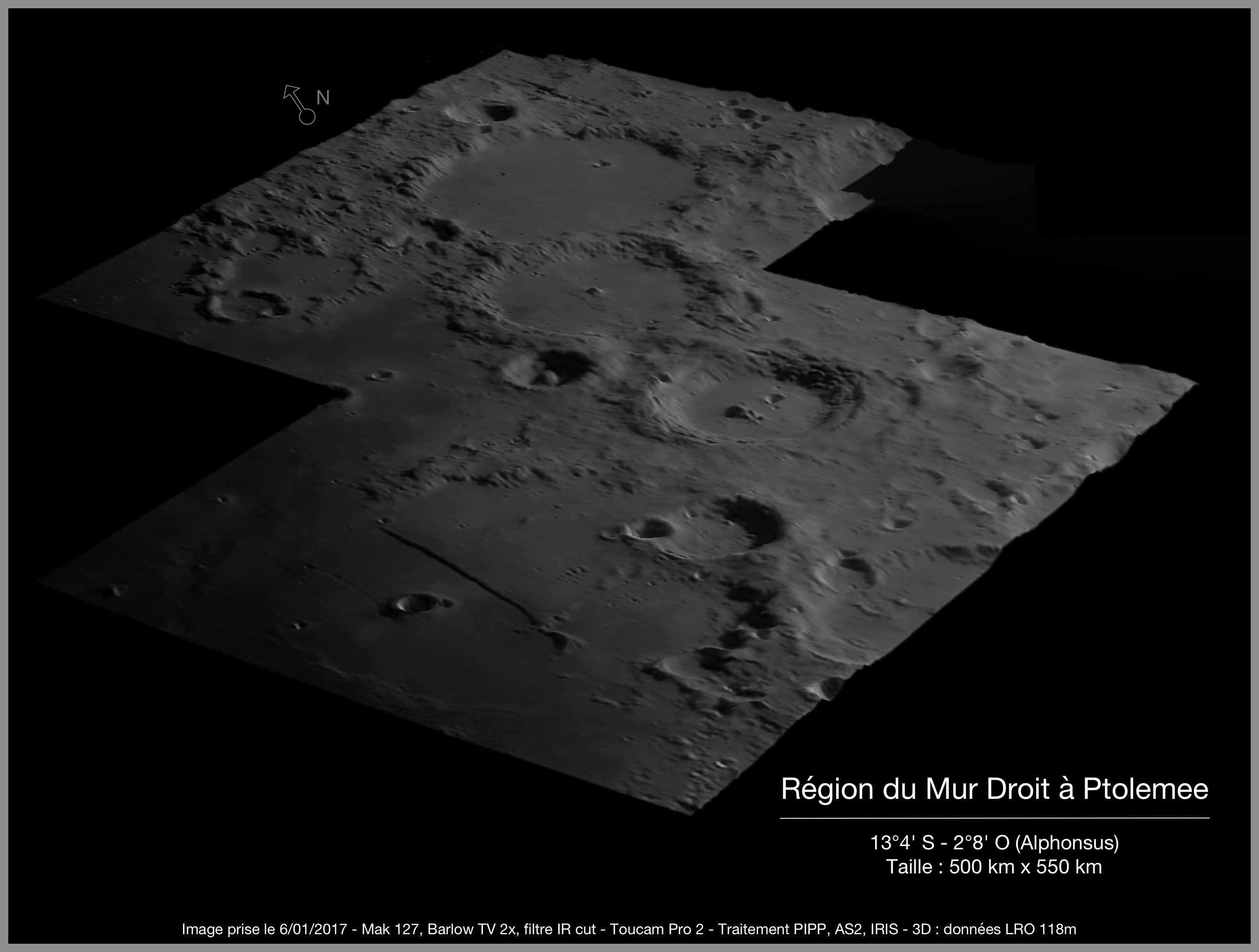 lune Premiers plans lunaires en 3D !! Mur droit/Ptolemee, Alpes/Platon, Eratosthènes