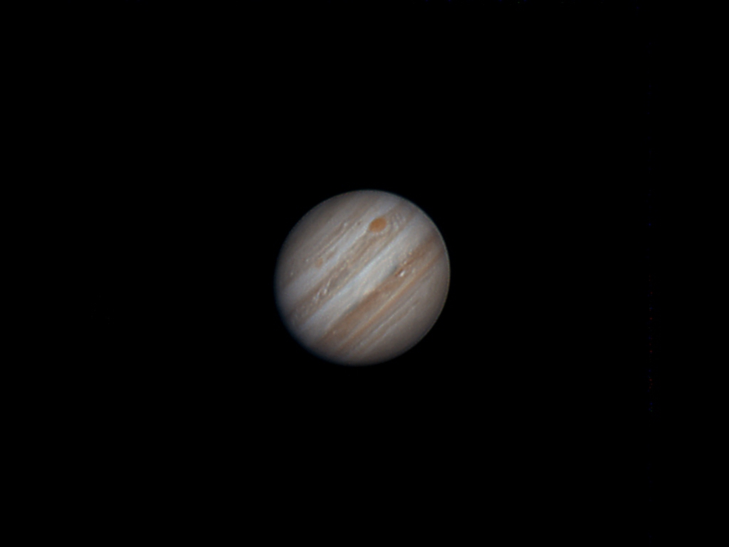 Hier soir je l'avais donc lachement abandonnée pour aller planter mon C8 sur le plateau de Saclay (en gros 15 bornes au sud de Paris) pour aller observer et imager, notamment Jupiter en seconde partie de nuit (avec un sac de couchage, on dort très bien dans la voiture n'est-ce pas Ricounet ;)). J'ai traité cet après-midi après la sieste les acquisitions de la nuit. J'en trouve une pas trop mal que je lui montre :