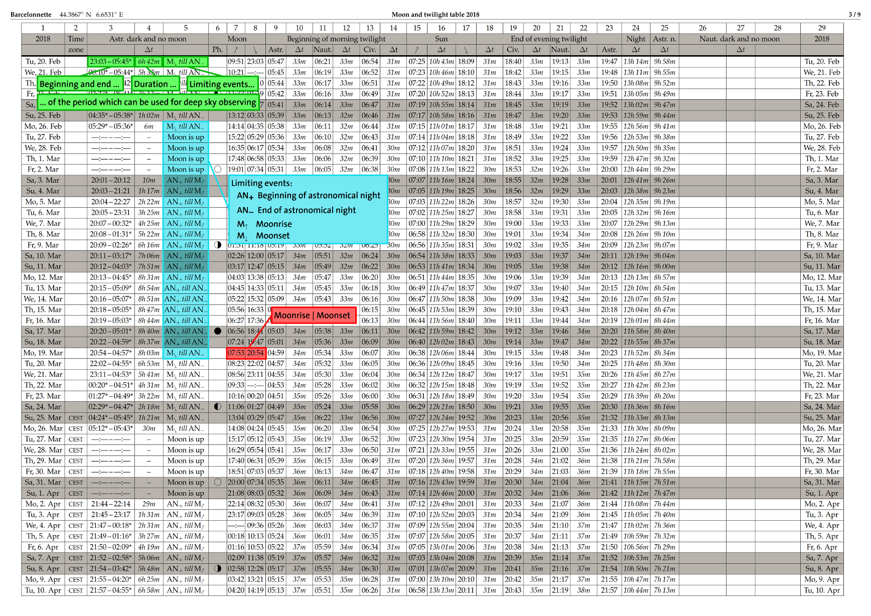 tech Calendriers de la lune et du crépuscule pour les chef-lieux des arrondissements