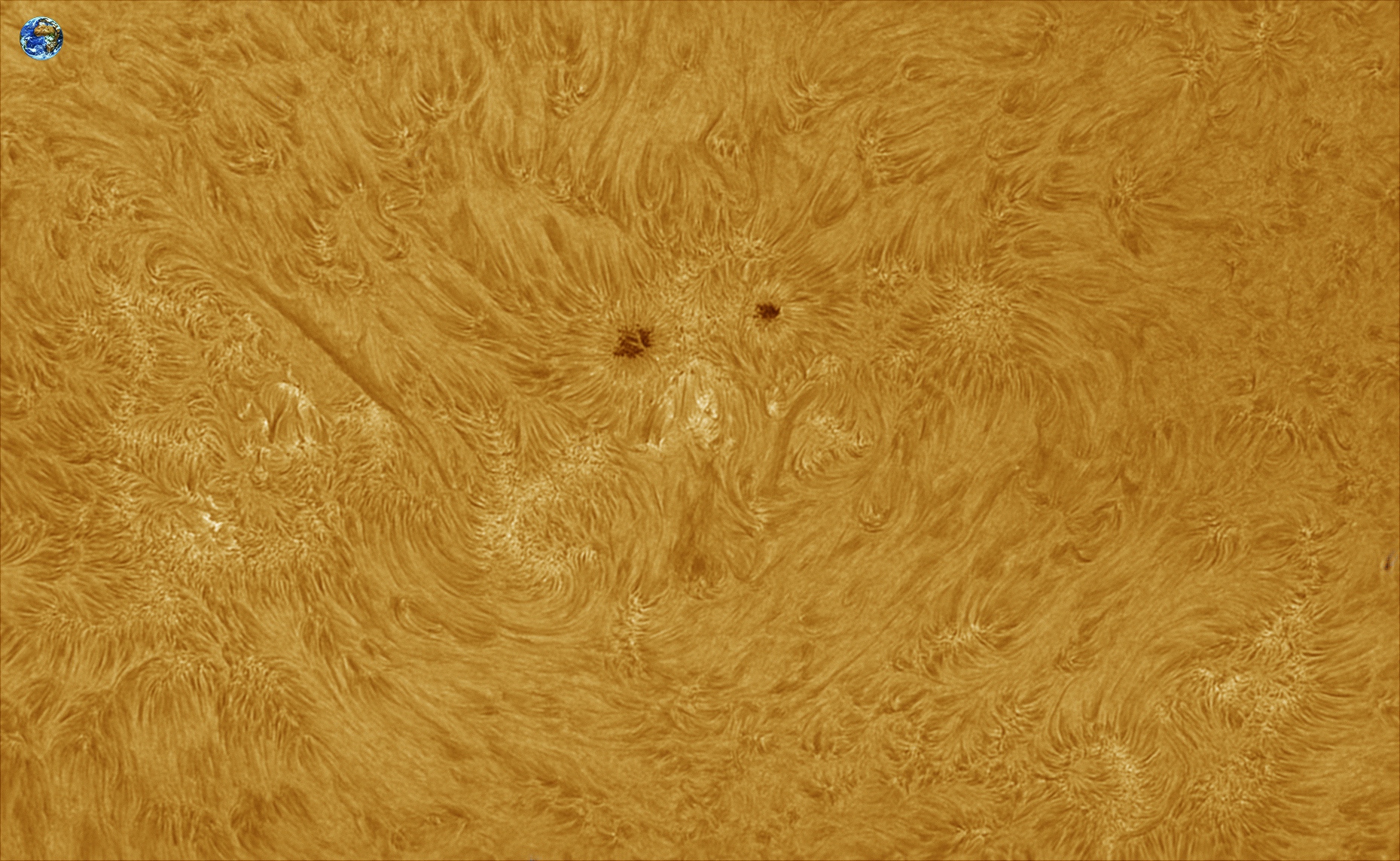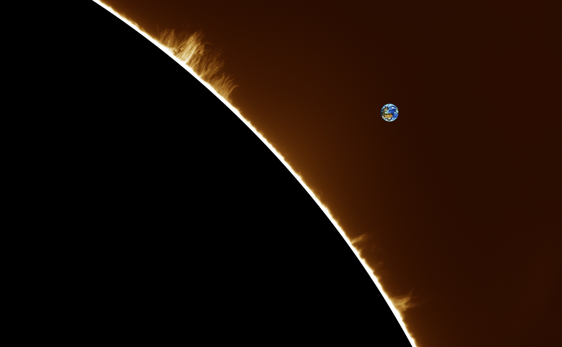 Je propose aussi différents traitements des images et j'ai ajouté notre planète bleu pour donner une idée de l'échelle des phénomènes photographiés.