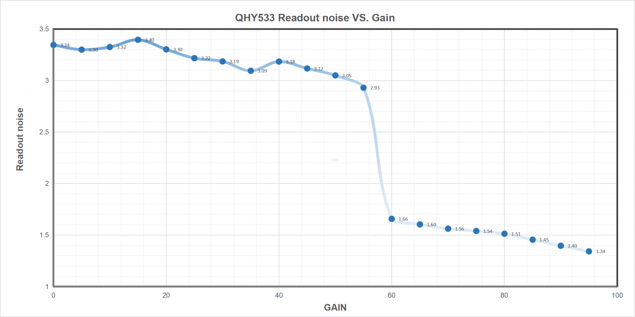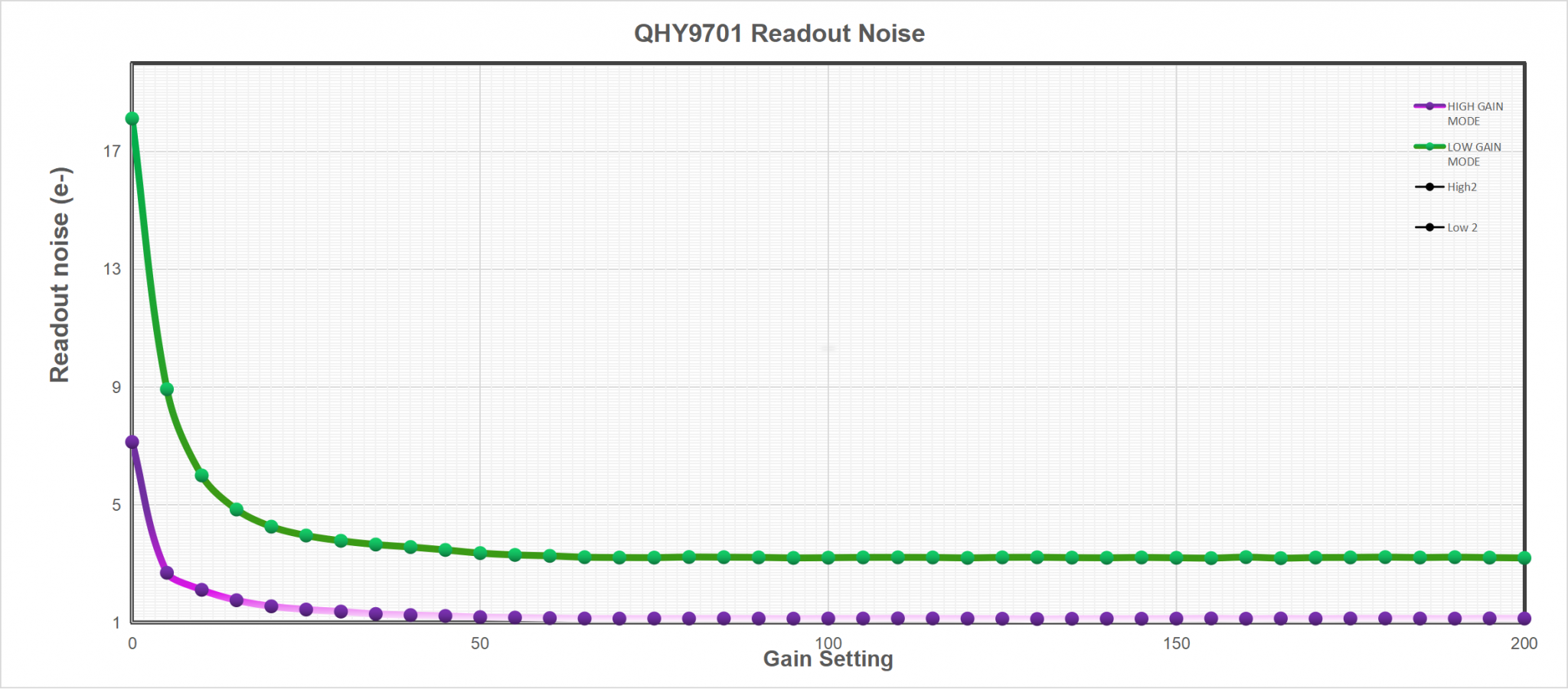 QHYCCD des courbes de bruit de lecture plus précises pour ces deux caméras :