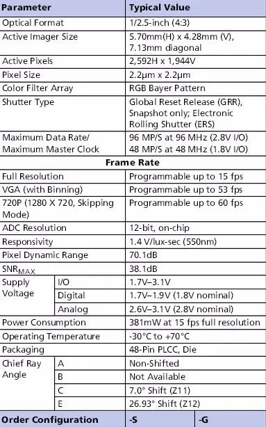 Celui à 40€ ressemble à un capteur Aptina MT9P031I12STC.