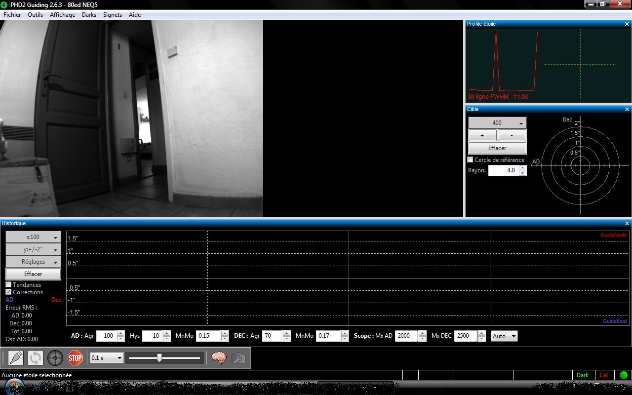 Après 1h de mise en station loupé, j’ai réussi à obtenir quelques image et guidage, pas top mais déjà intéressant.