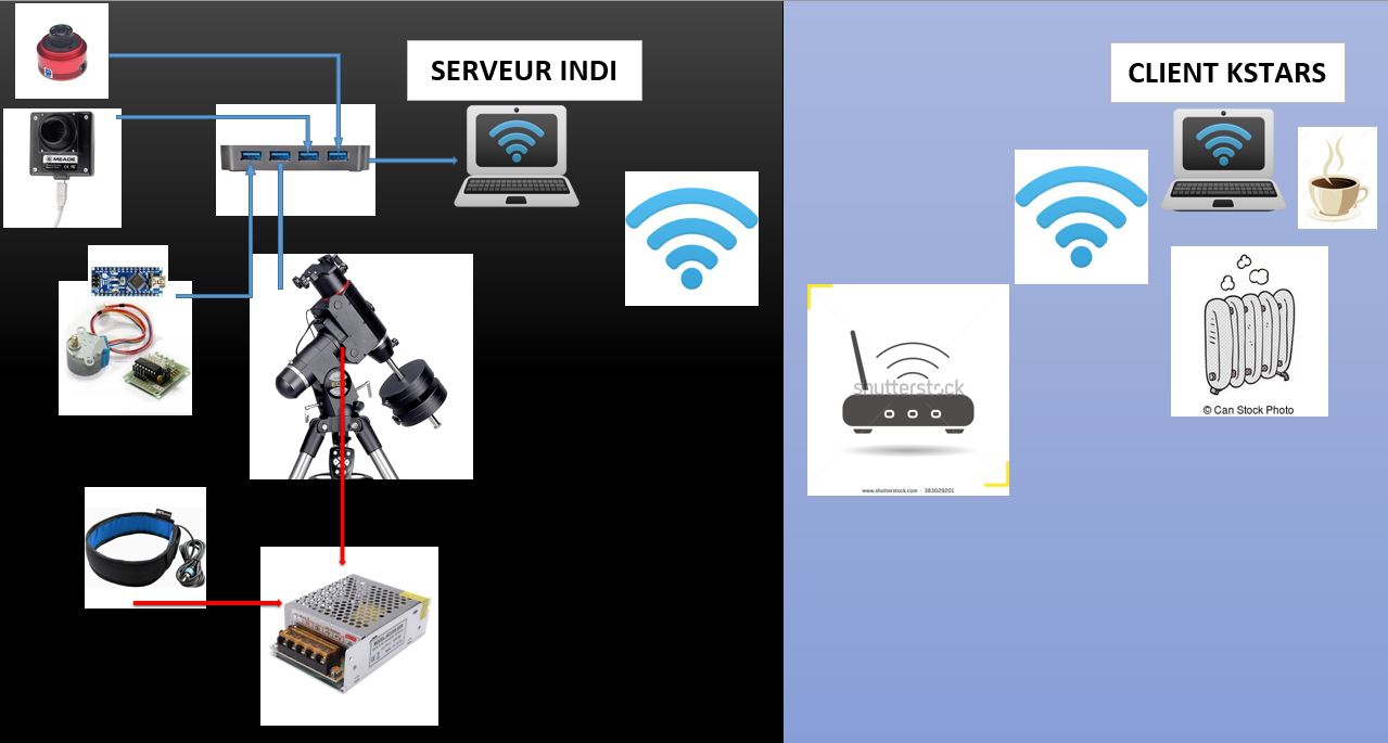 gehelem Posté 1 octobre 2017 Posté 1 octobre 2017 bonjourj'ai une question au sujet de "Serveur INDI" j'ai réaliser le système "nafa box" ,mais j'aimerais savoir si c'est avec le système serveur indi que peut commander mon télescope et ses accessoires au moyen de la nafa mais juste en la servant de relais de connexion wifi avec mon Kstars sur mon portable au chaud. Ou alors c'est un autre moyen de commander le Ktars installer sur la nafabox ?? Si tu veux bien patienter un peu, je ferai probablement une vidéo là-dessus le week end prochain, ce sera peut-être plus clair (mais en gros oui, tu as tout entre les mains )
